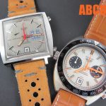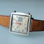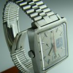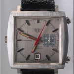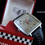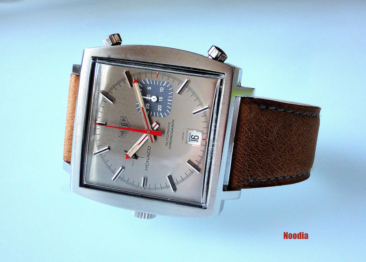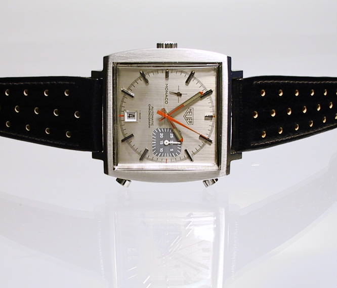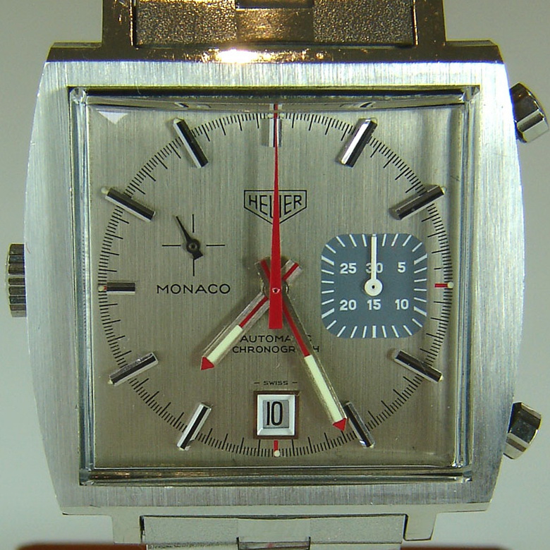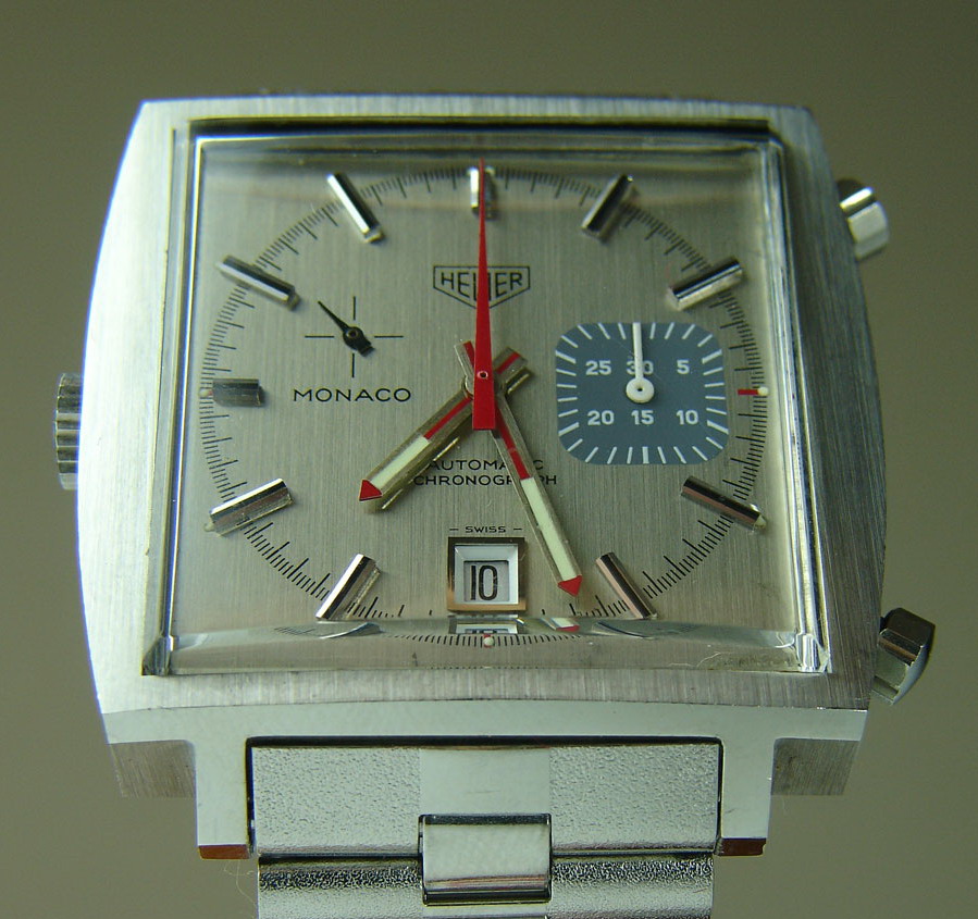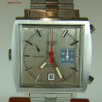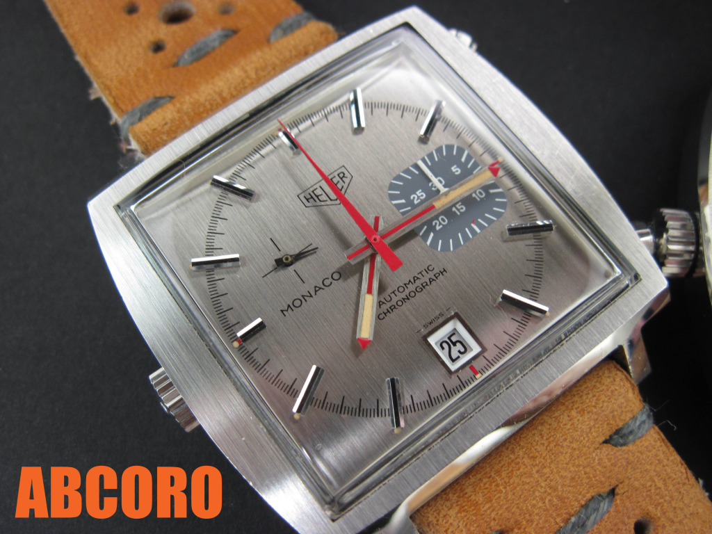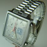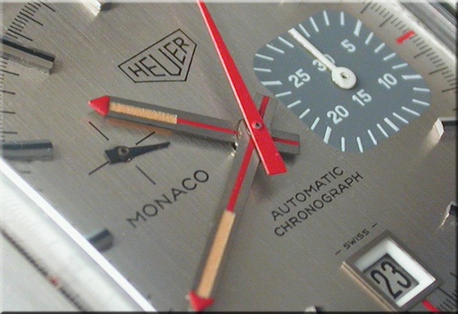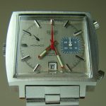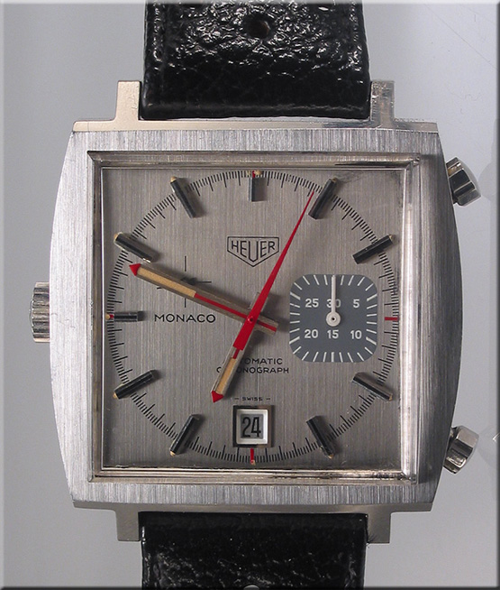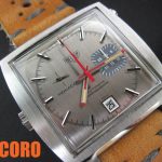 Grey dial with asymmetrical registers; seconds register floats to left without a border around the register.
