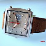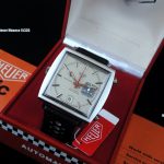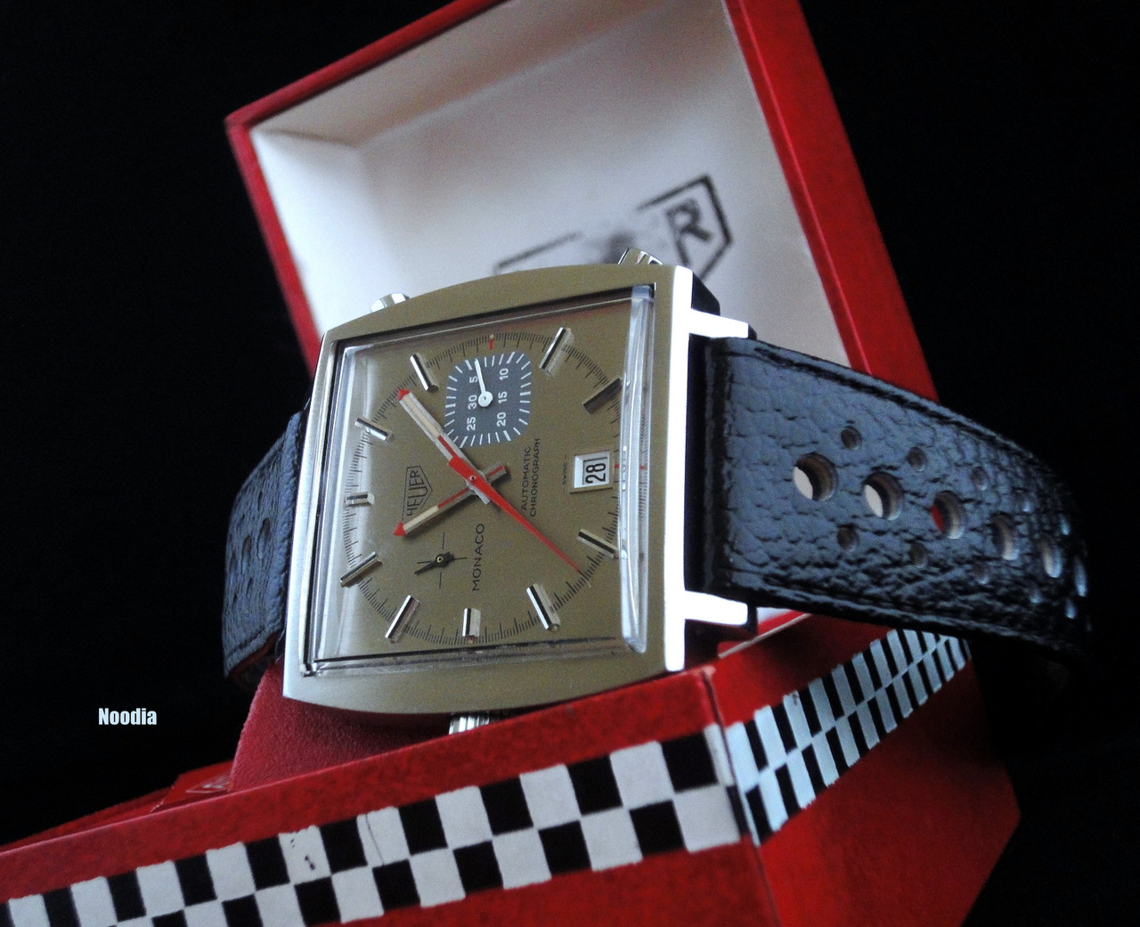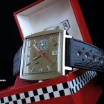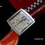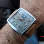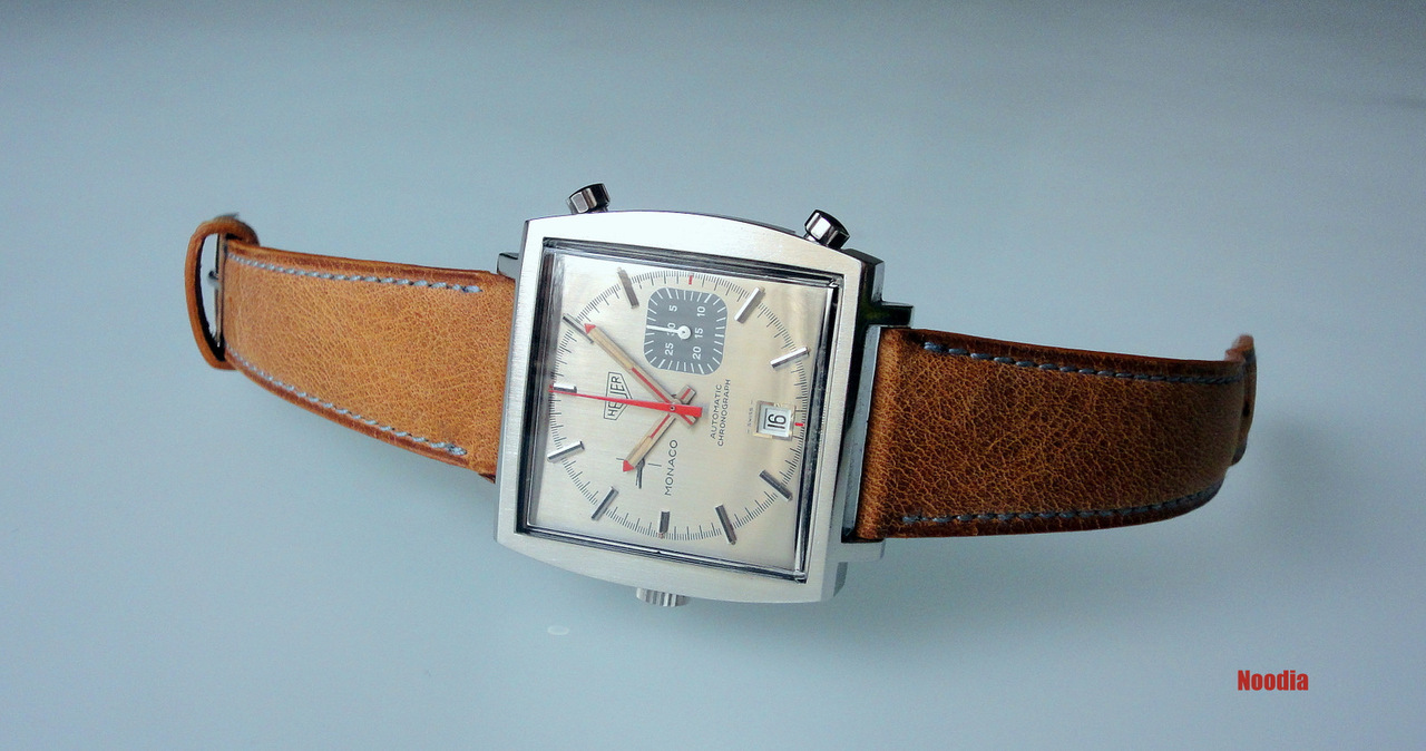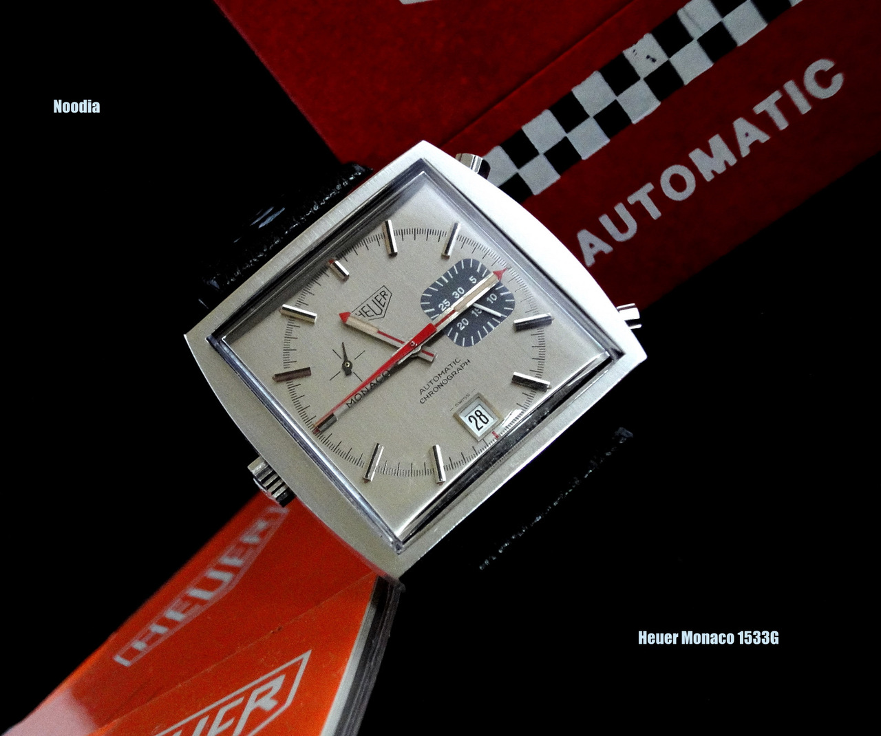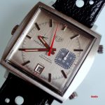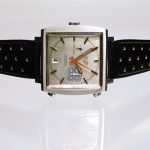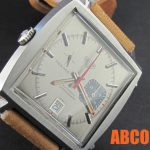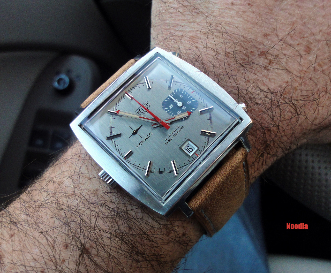 Grey dial with asymmetrical registers; seconds register floats to left without a border around the register.