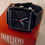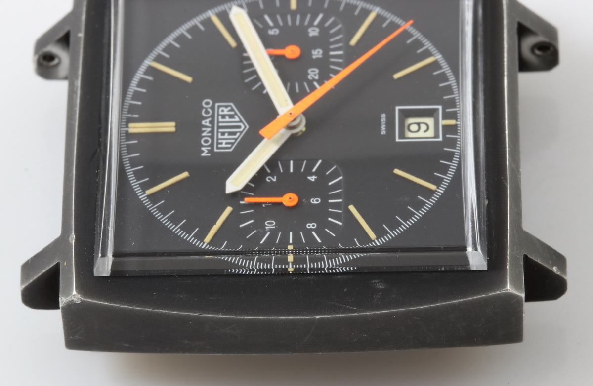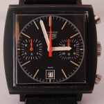 Some collectors refer to this version of the Monaco (74033N) as the “Dark Lord”. It is not included in any Heuer catalog or advertisement.