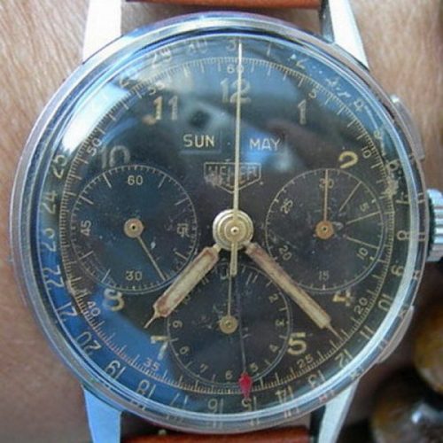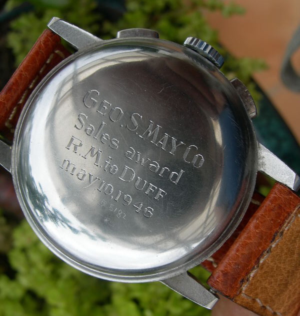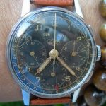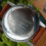 Black dial, with gold printing for day, date and month; radium numerals and hands