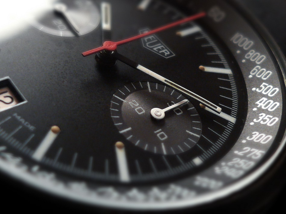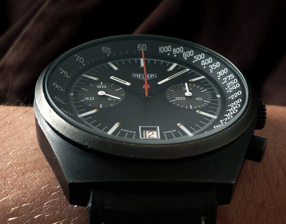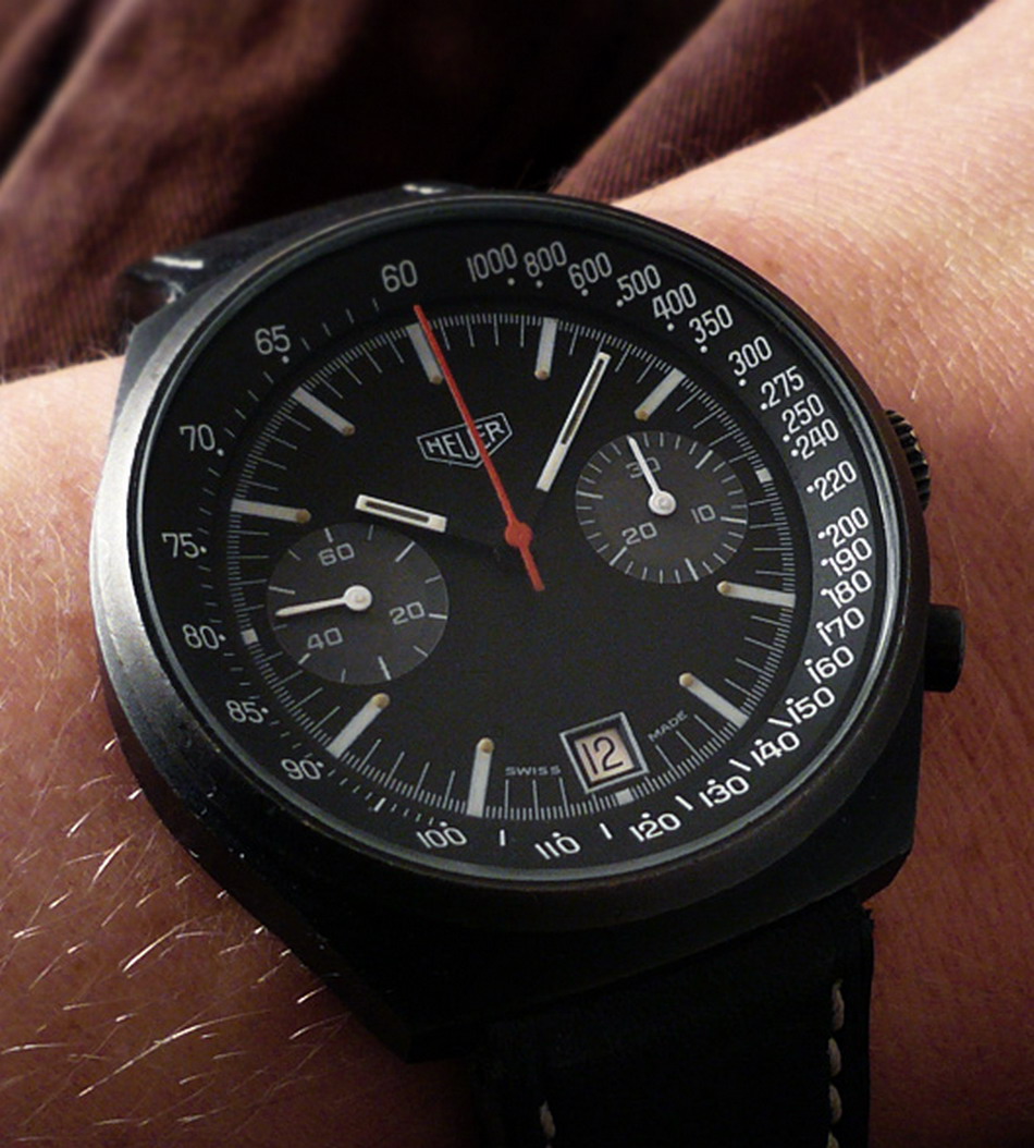 Reference 12 has a black-coated case, with two registers and a date, powered by the Valjoux 7734 movement