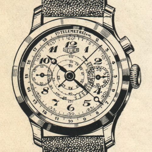 Case 2 (a biseau), Dial A has white dial with black Breguet style numerals and hands, and tachymeter and telemeter scales on dial; one oval pusher