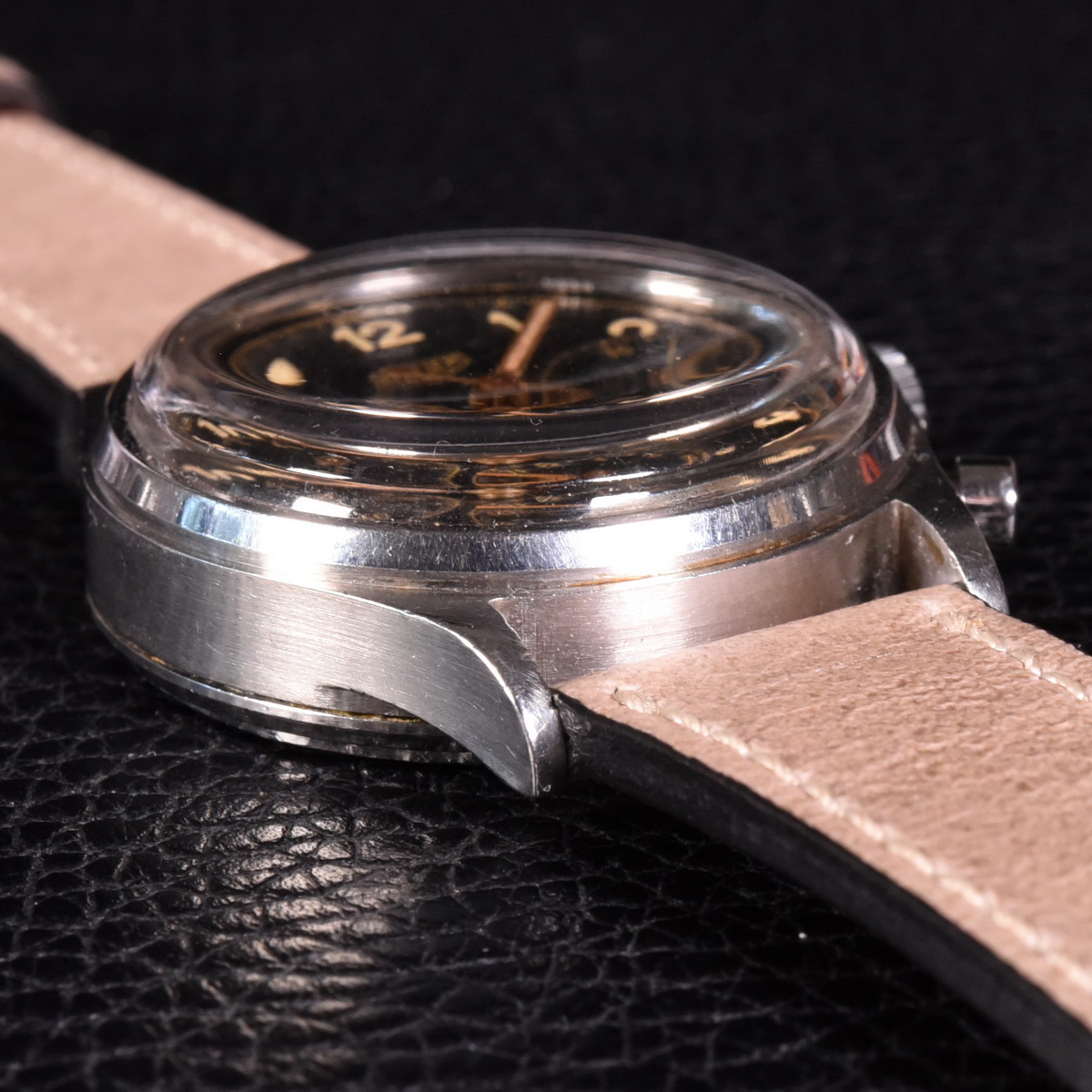 Reference 346 NR has a black dial with painted numerals (radium) and gilt accents; military style hands (radium filled).