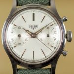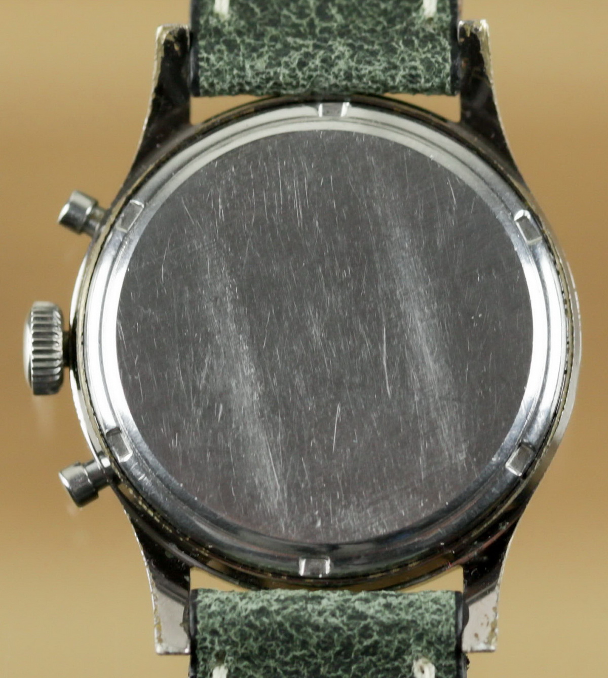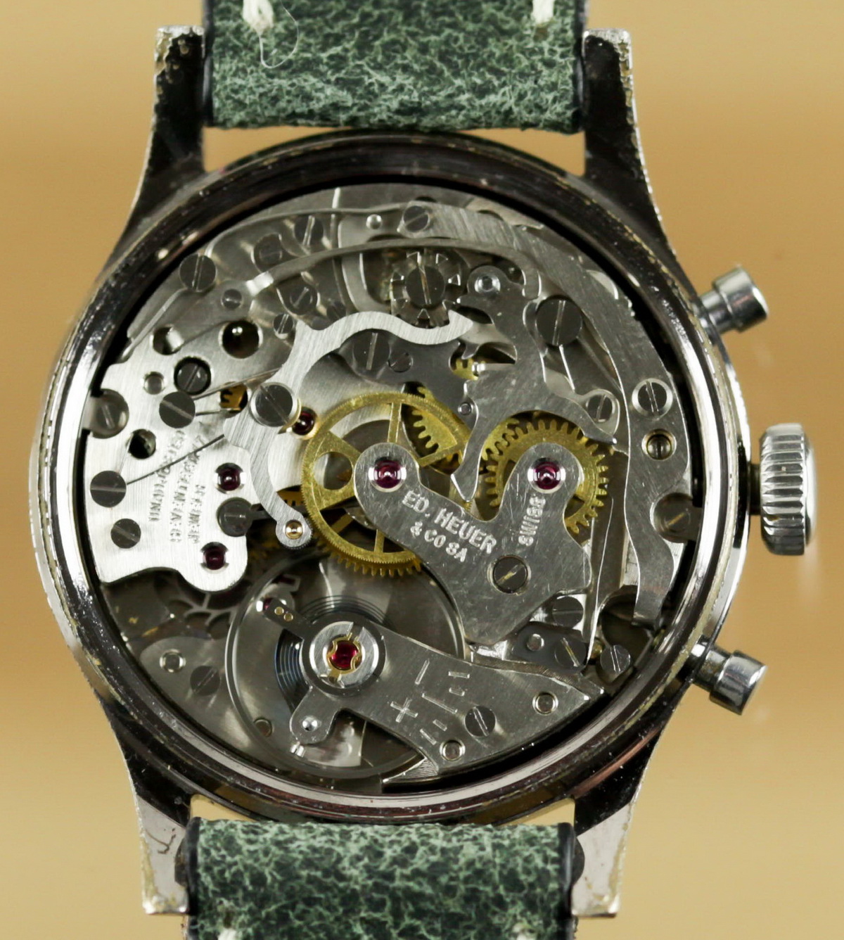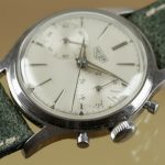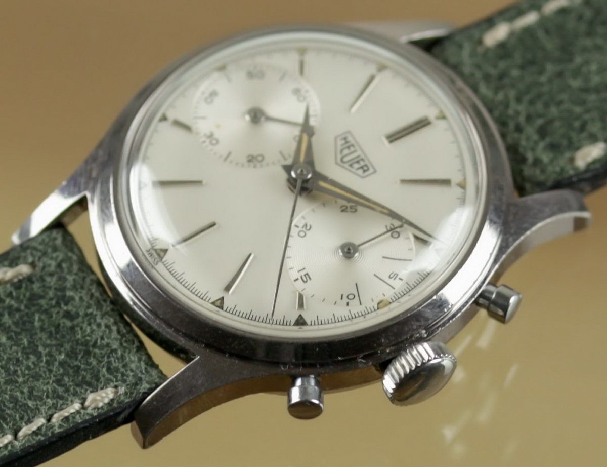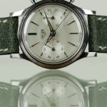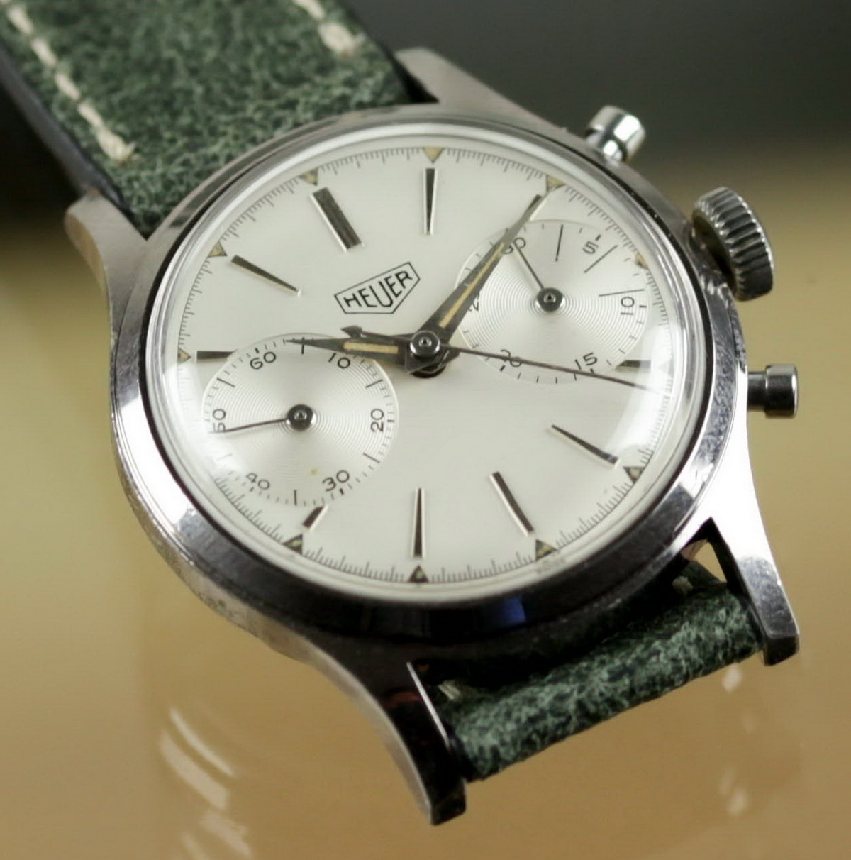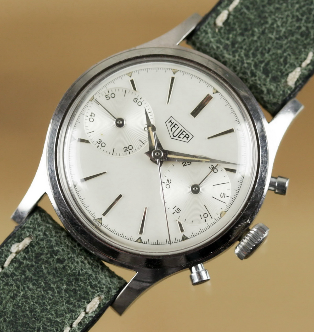 First execution (circa 1962) has silver dial and registers; dauphine hands; 30 minute recorder