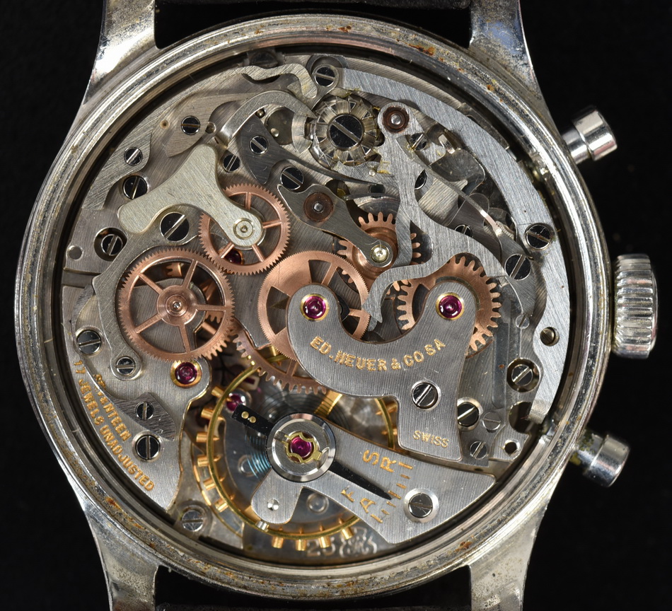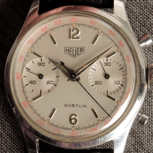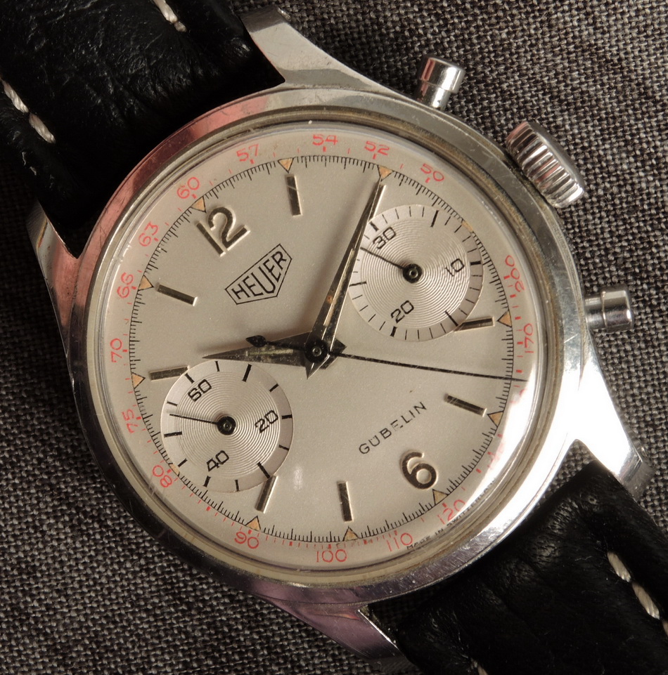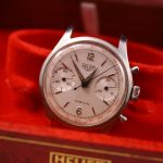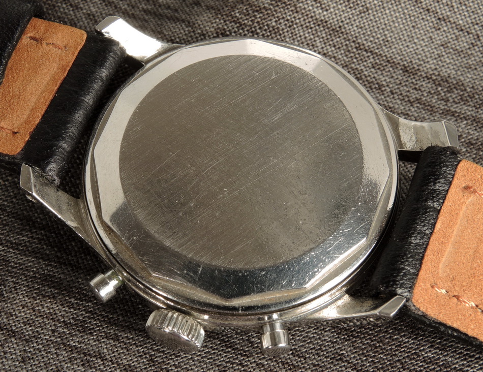 Reference 404 T has stainless steel case; silver dial with tachymeter scale on dial