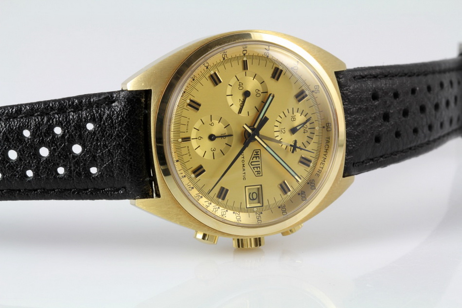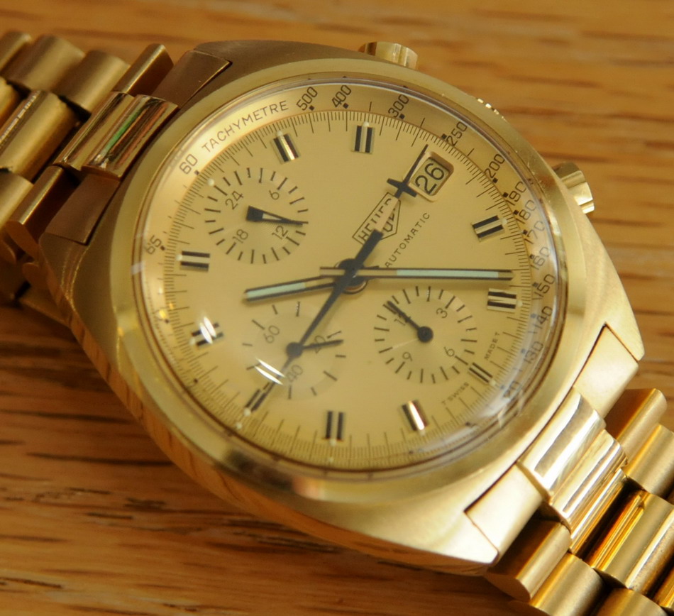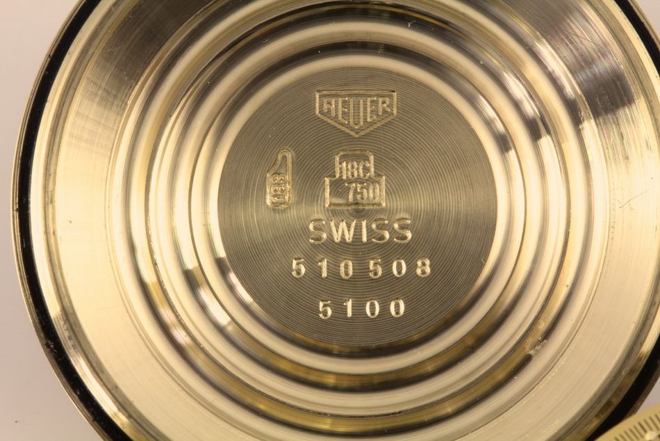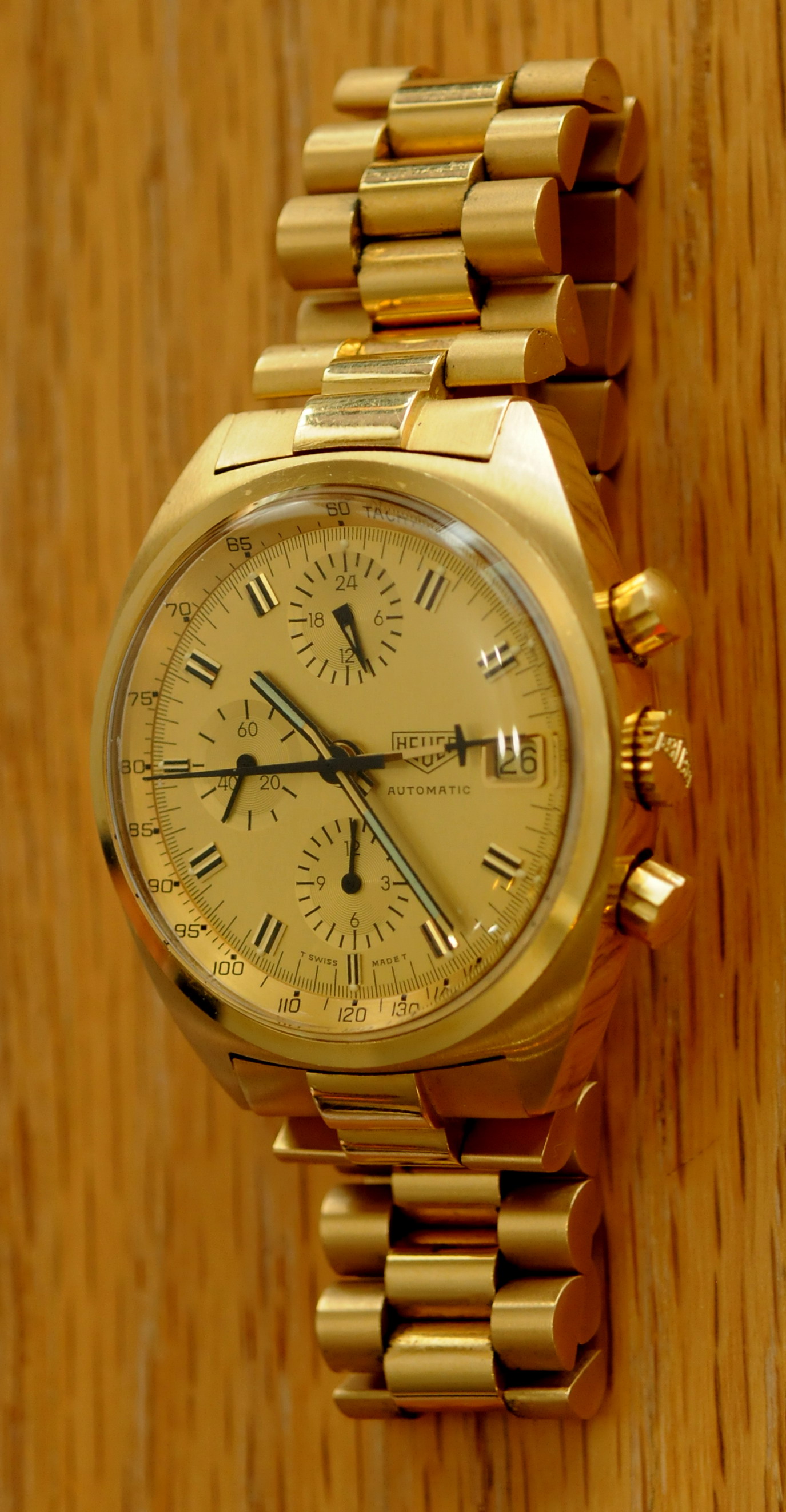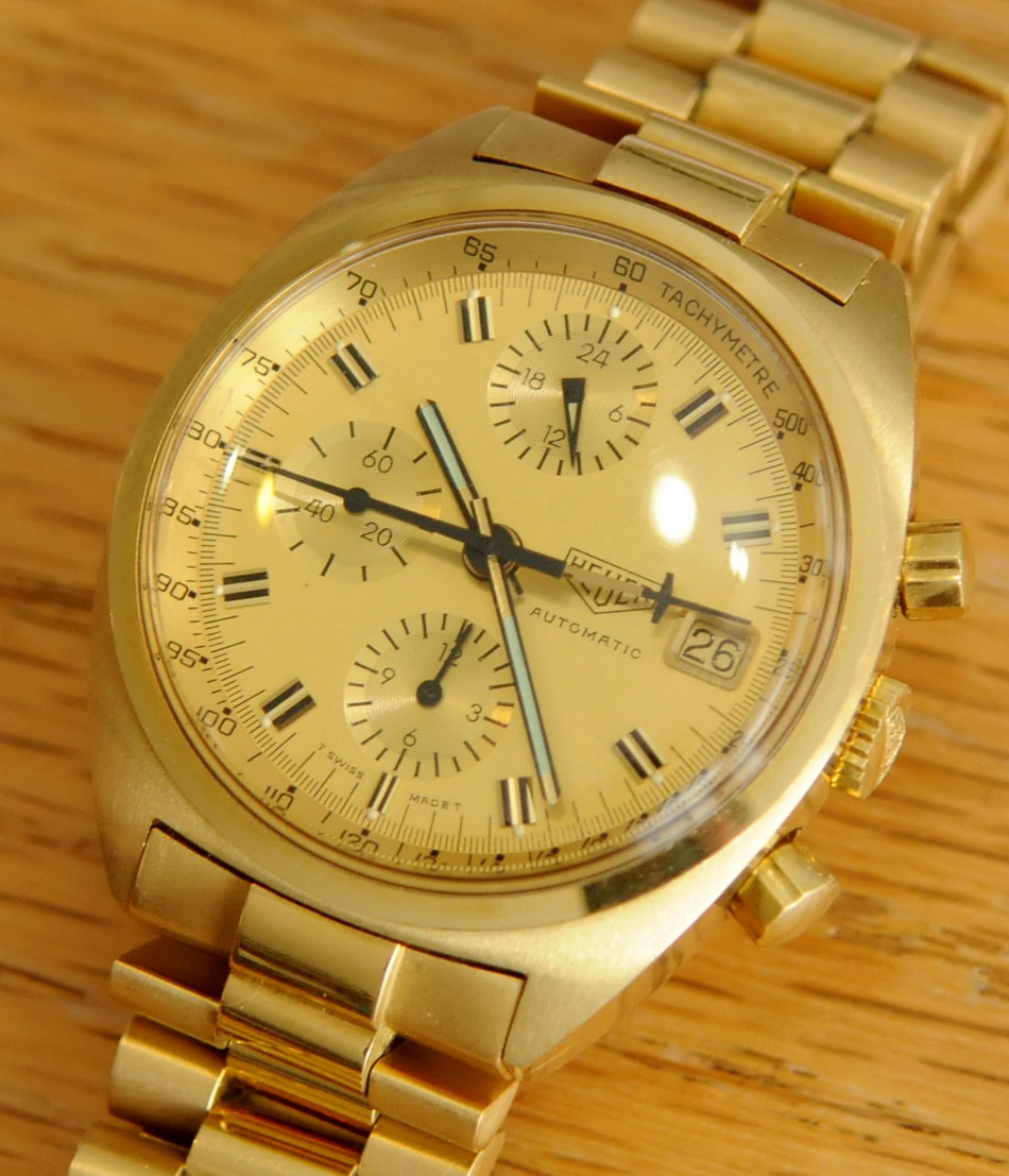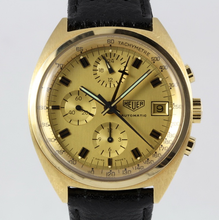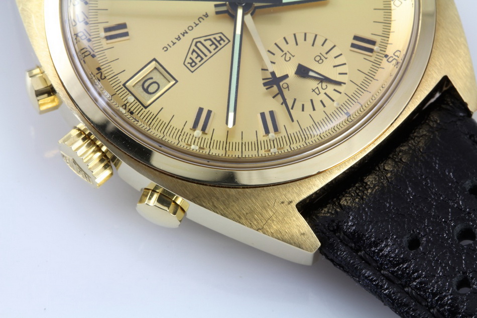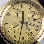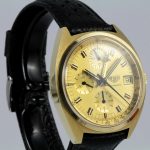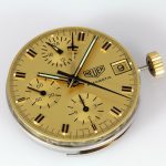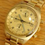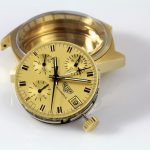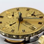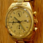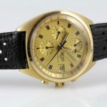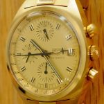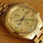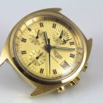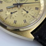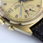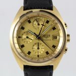 18 karat gold case; champagne dial; black chronograph hands; applied gold markers; separate register for 24 hour indication