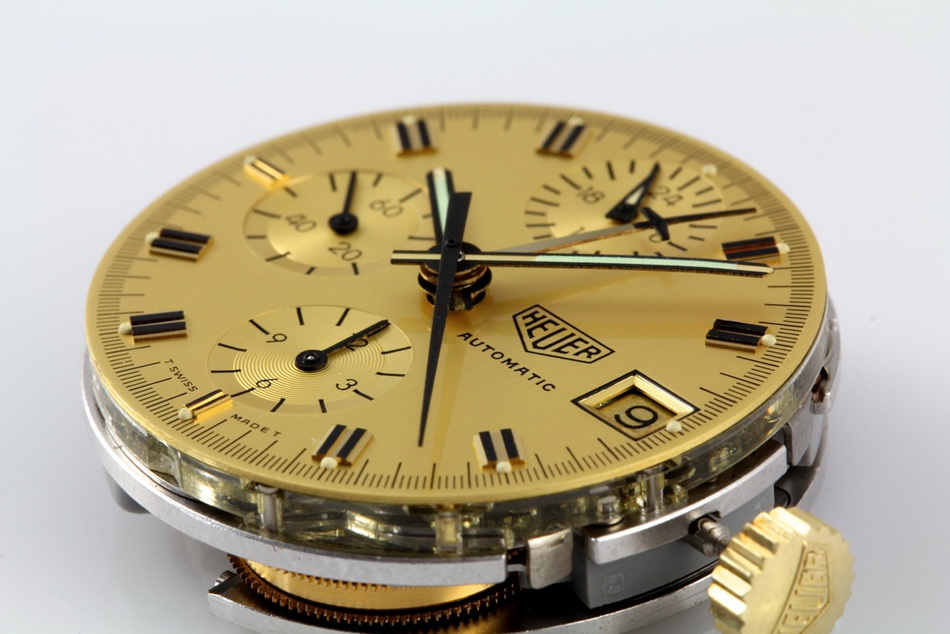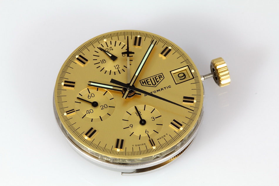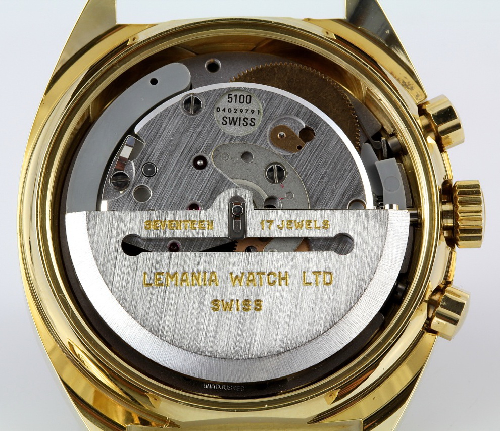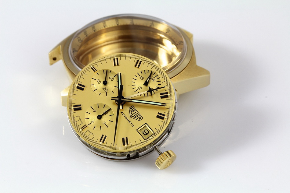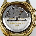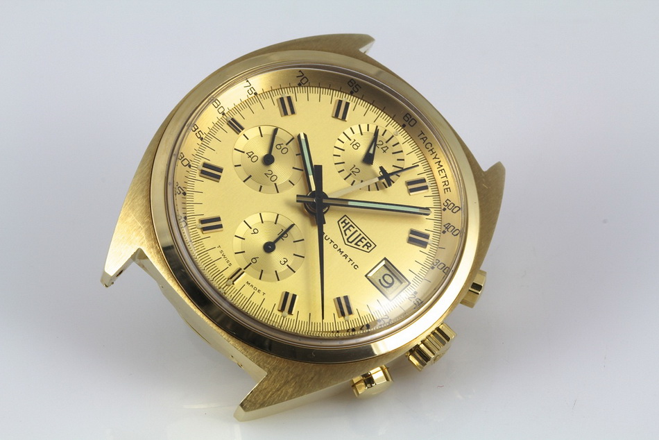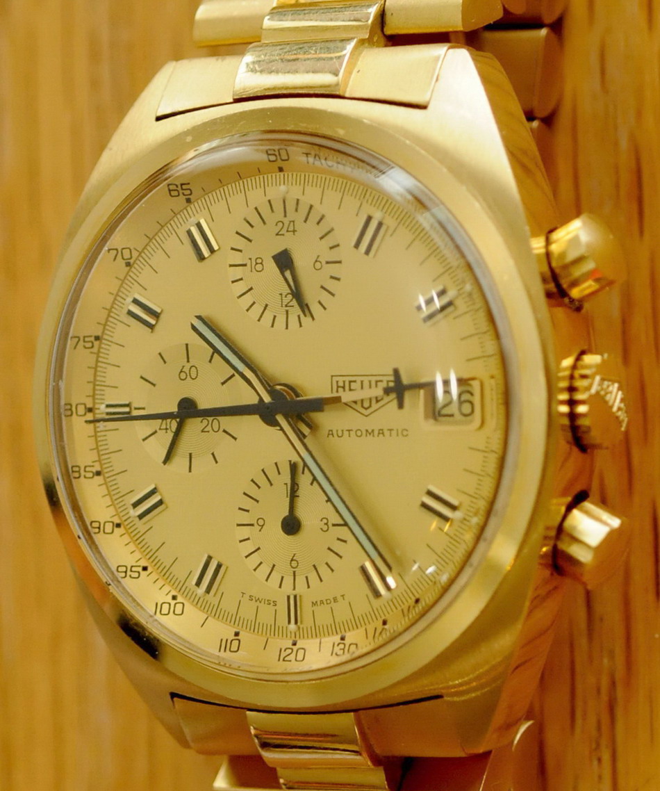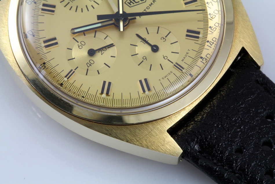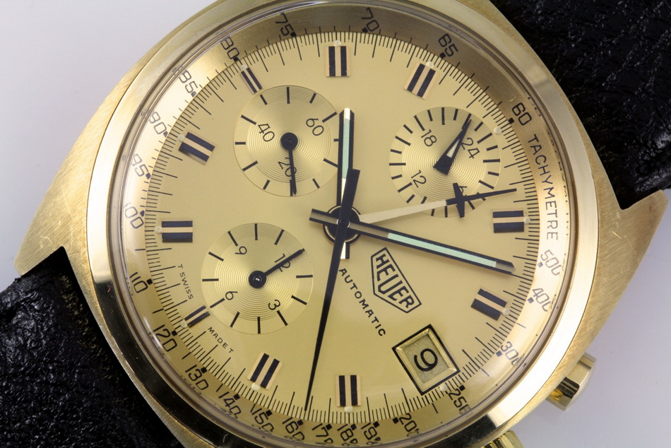 18 karat gold case; champagne dial; black chronograph hands; applied gold markers; separate register for 24 hour indication