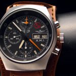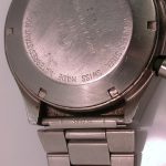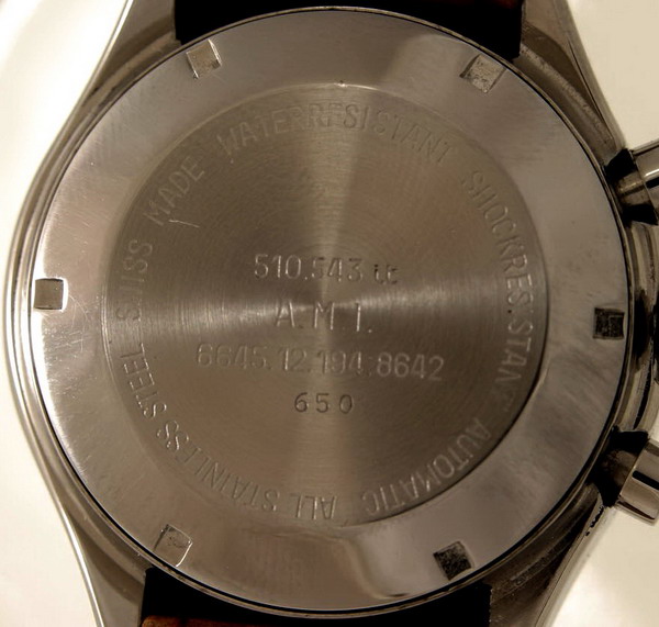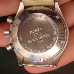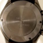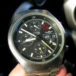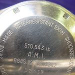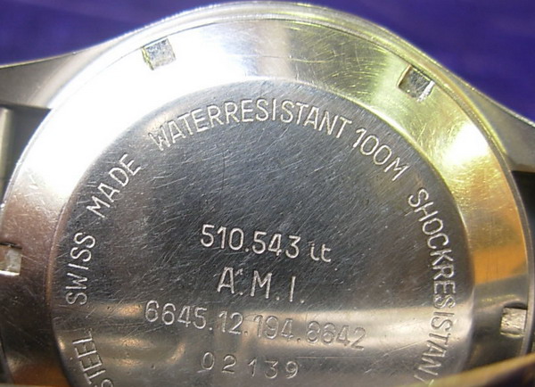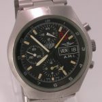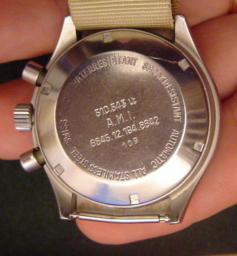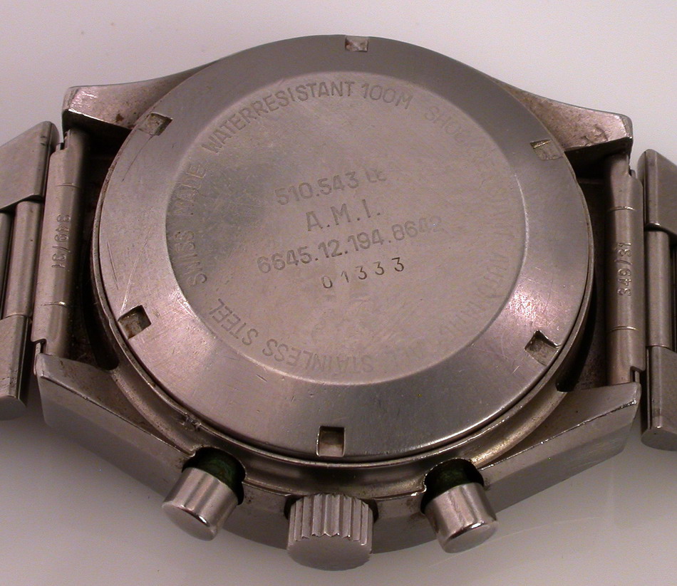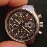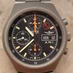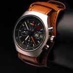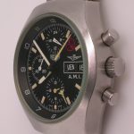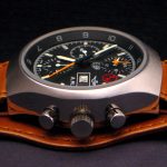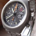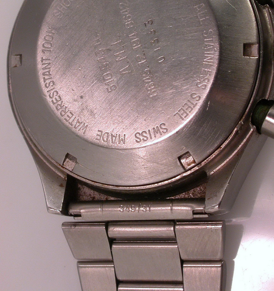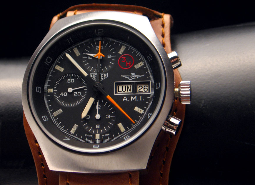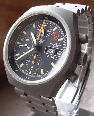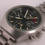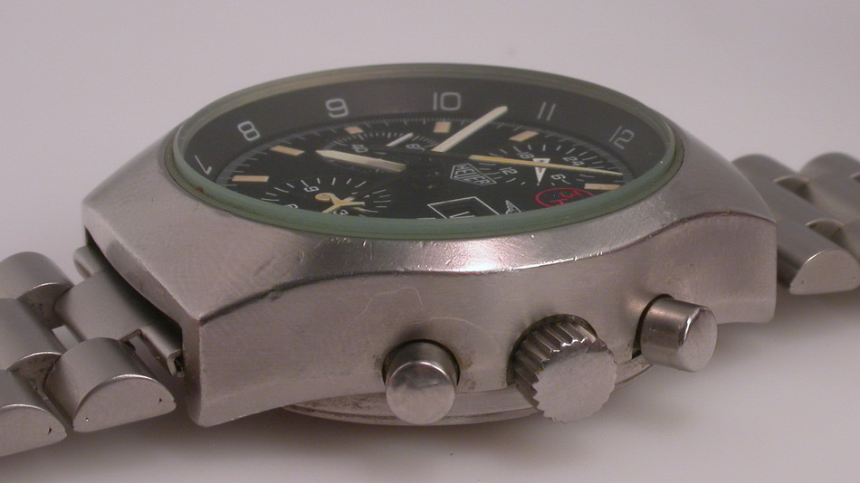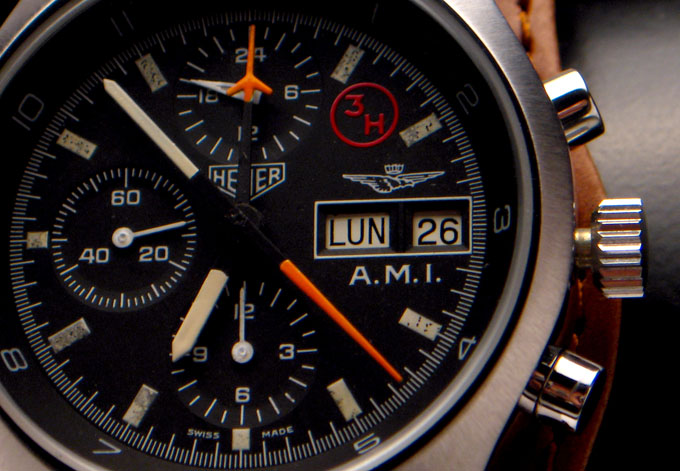 Black dial, with painted luminous markers; inner bezel has numerals for hours