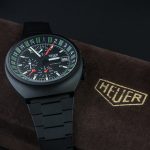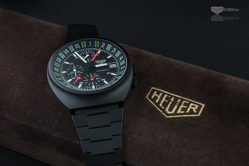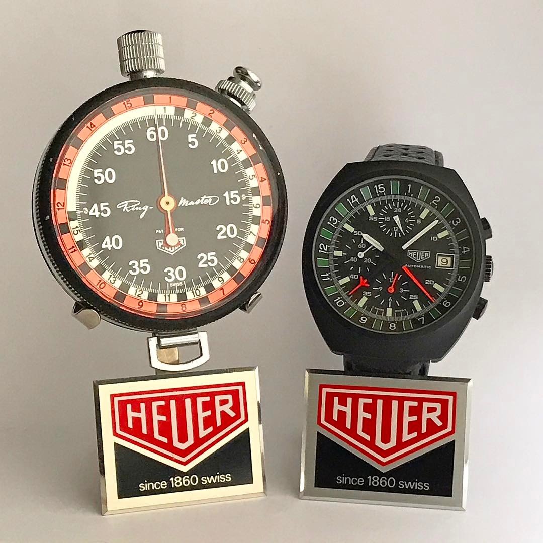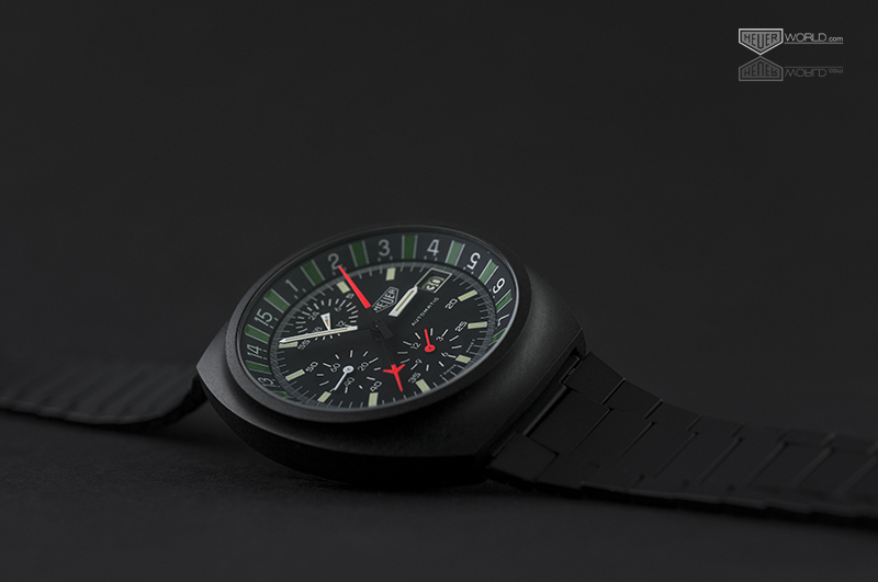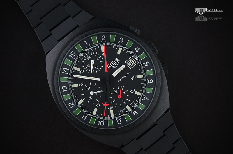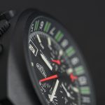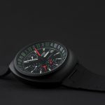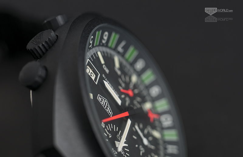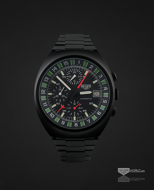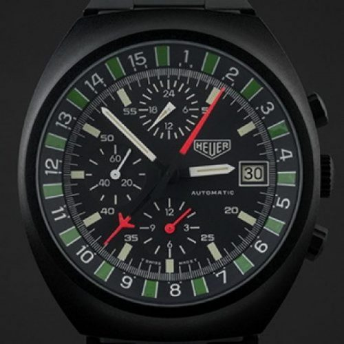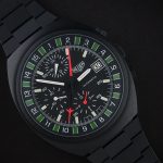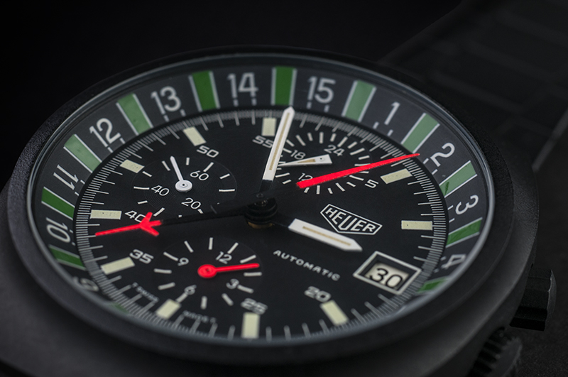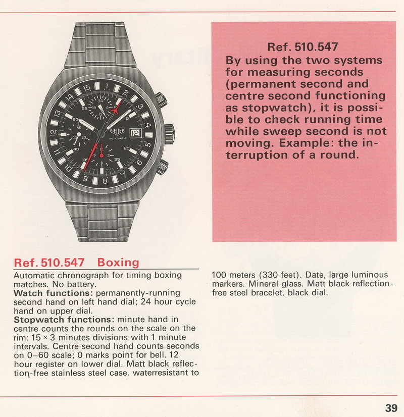Black dial, with orange chronograph hands; painted luminous markers and small numerals; inner bezel marked to time rounds of boxing match