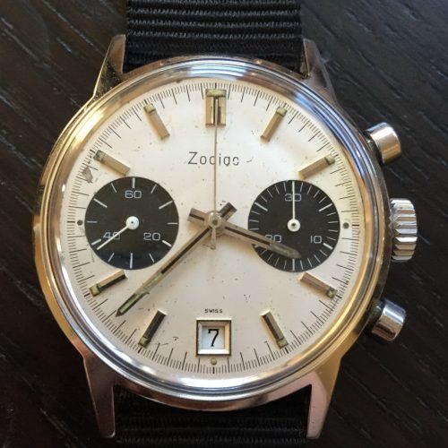 Reference 73423 SN has white dial with black registers; matchstick hands