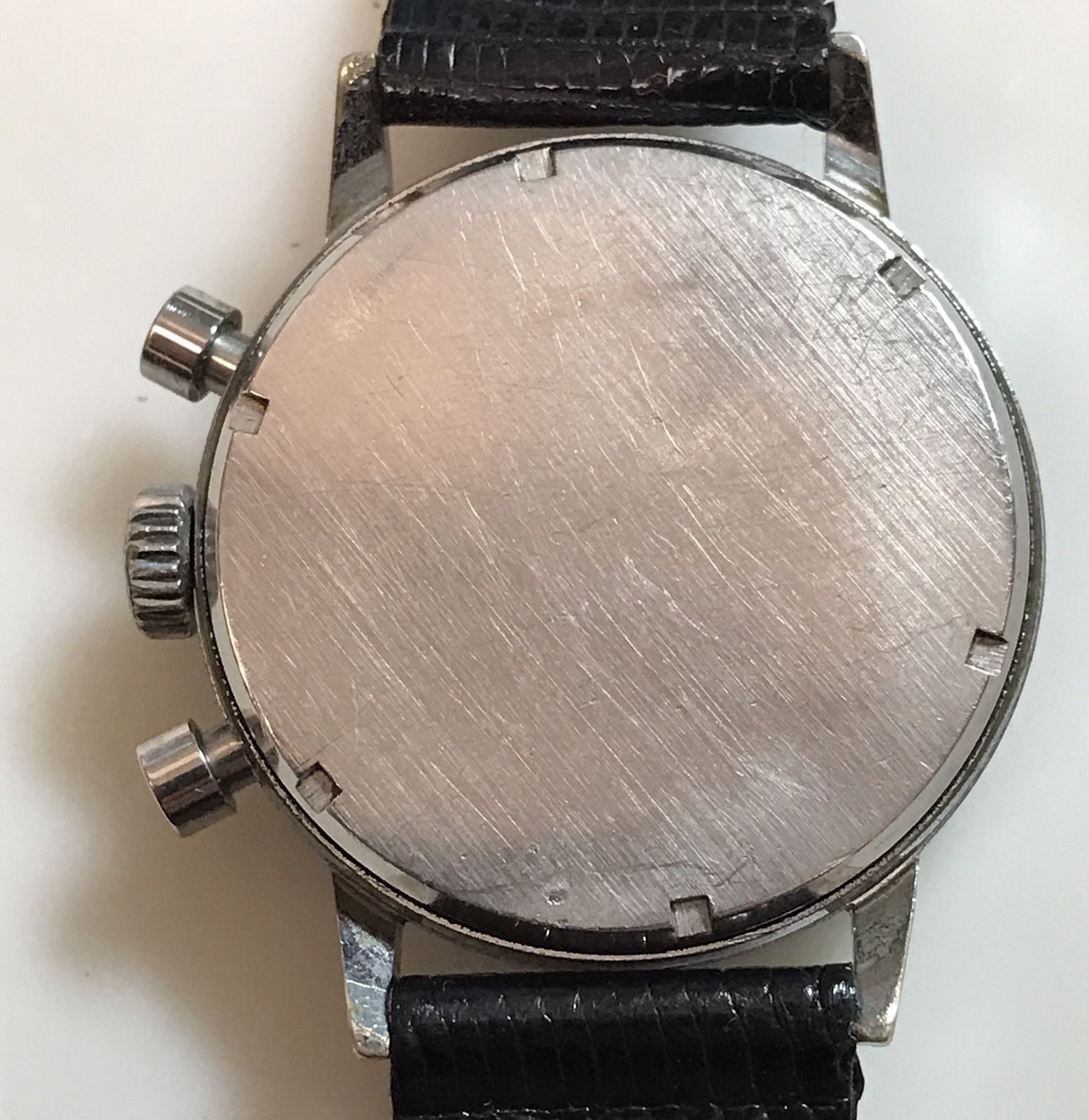 Reference 7721 S has chrome-plated case; silver dial and registers; matchstick hands