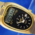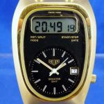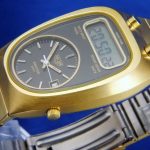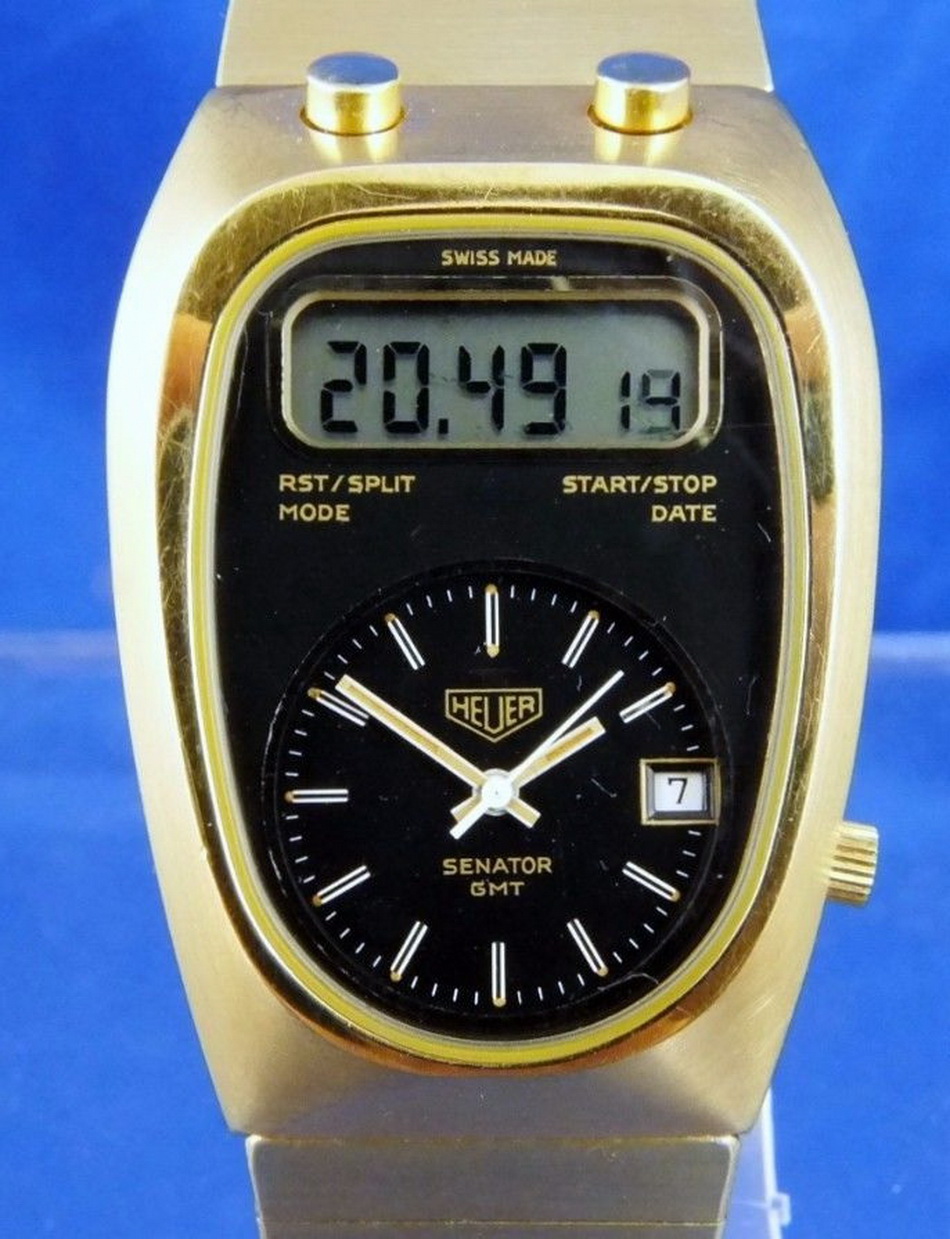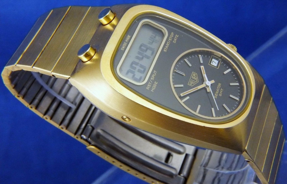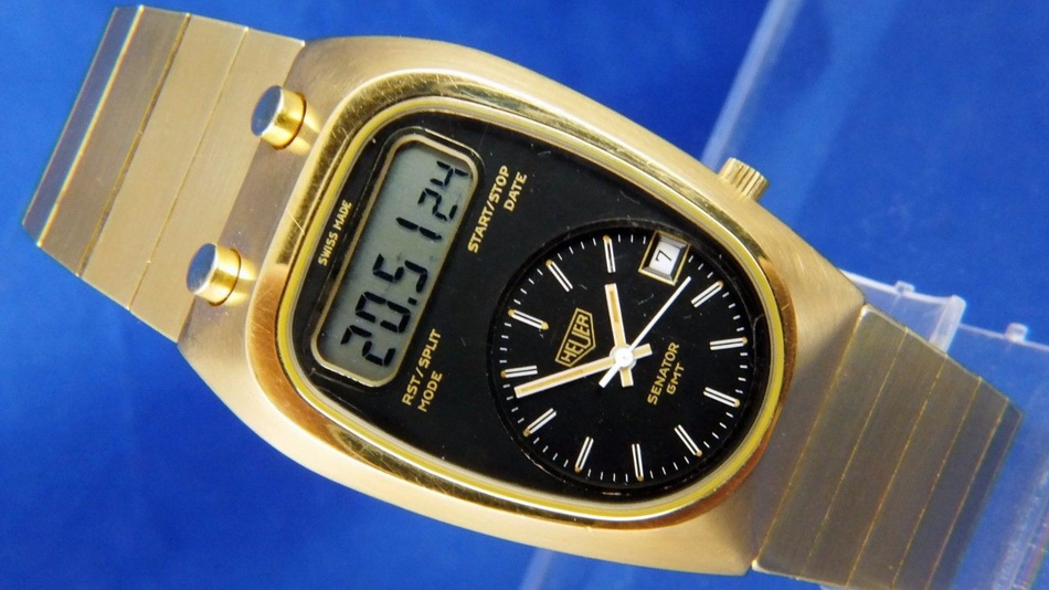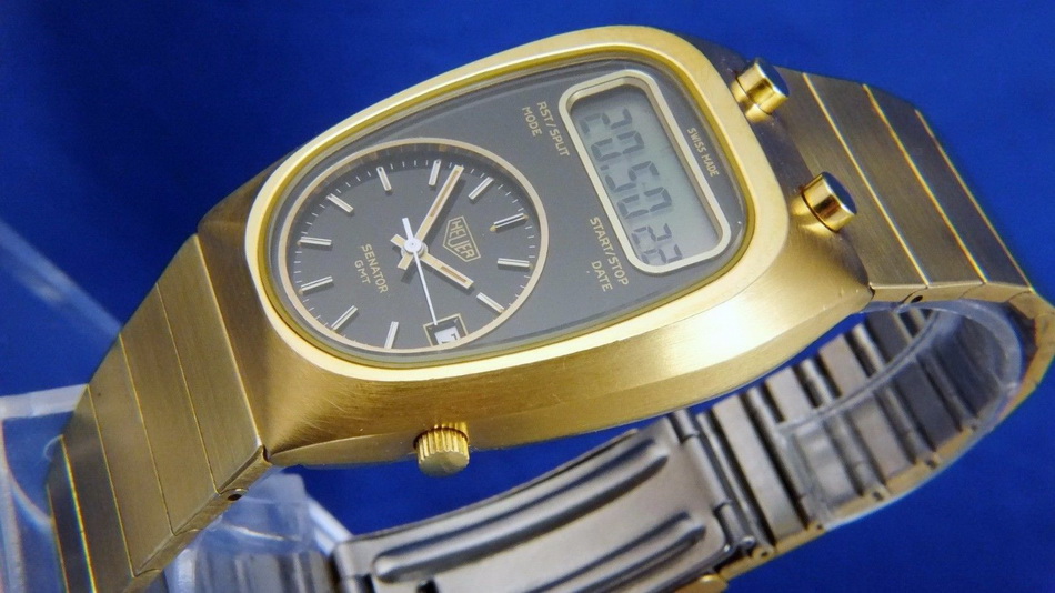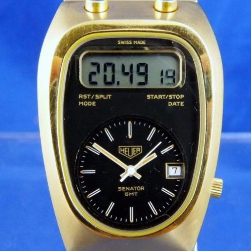 Senator GMT Reference 107.405 has gold-plated case with gold accents; black dial with gold accents