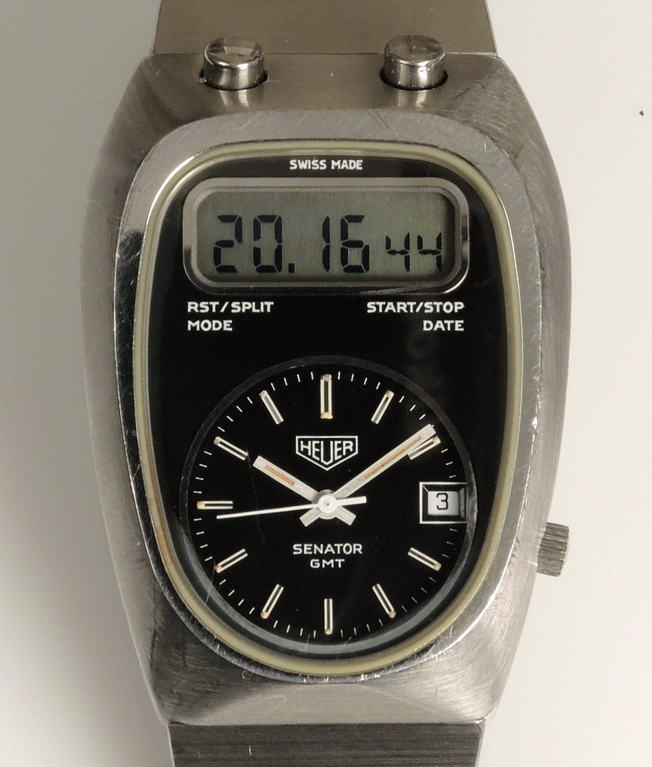 Senator GMT Reference 107.413 has stainless steel case; black dial