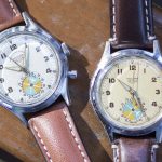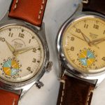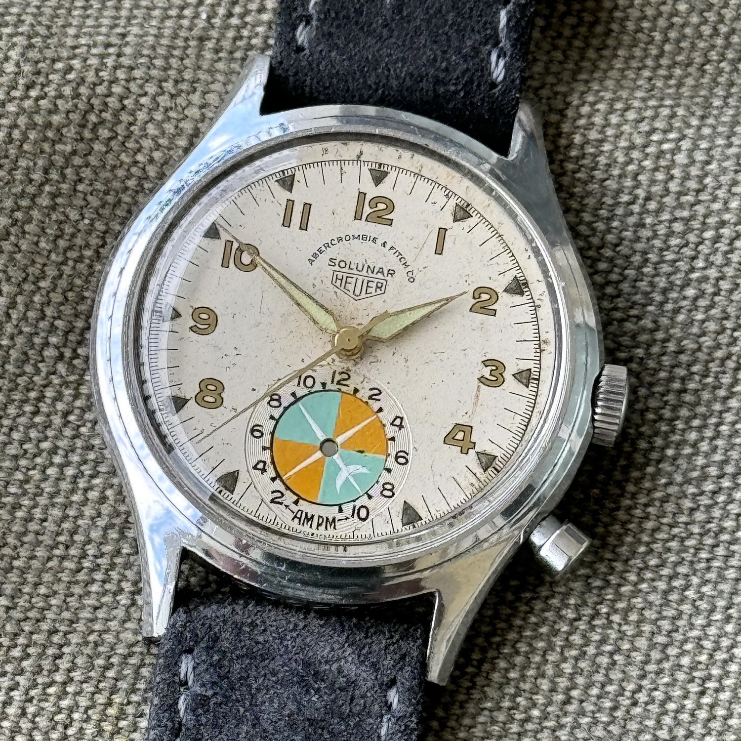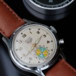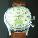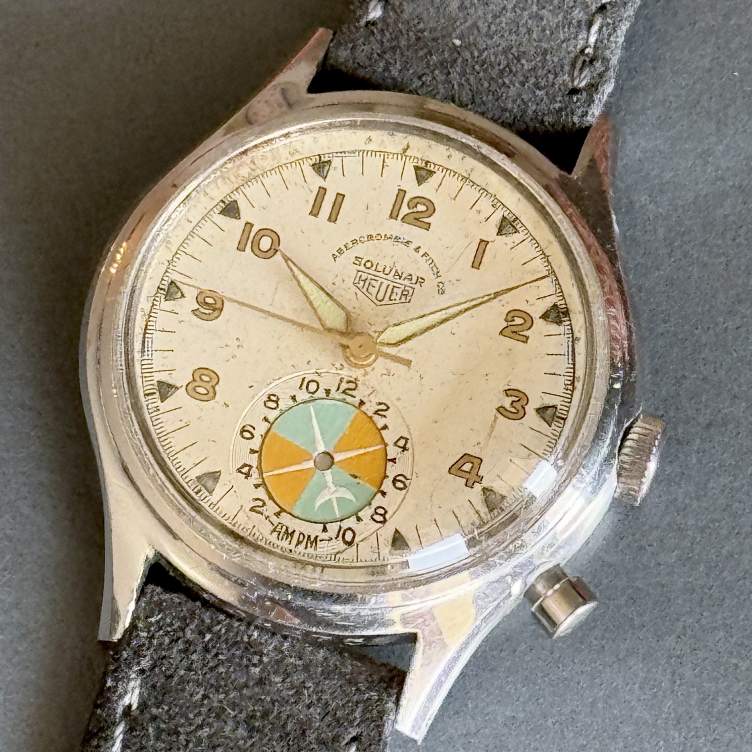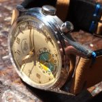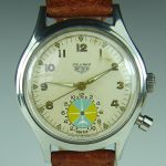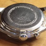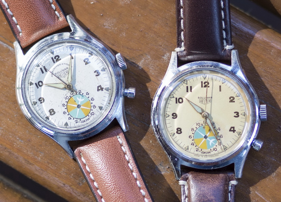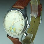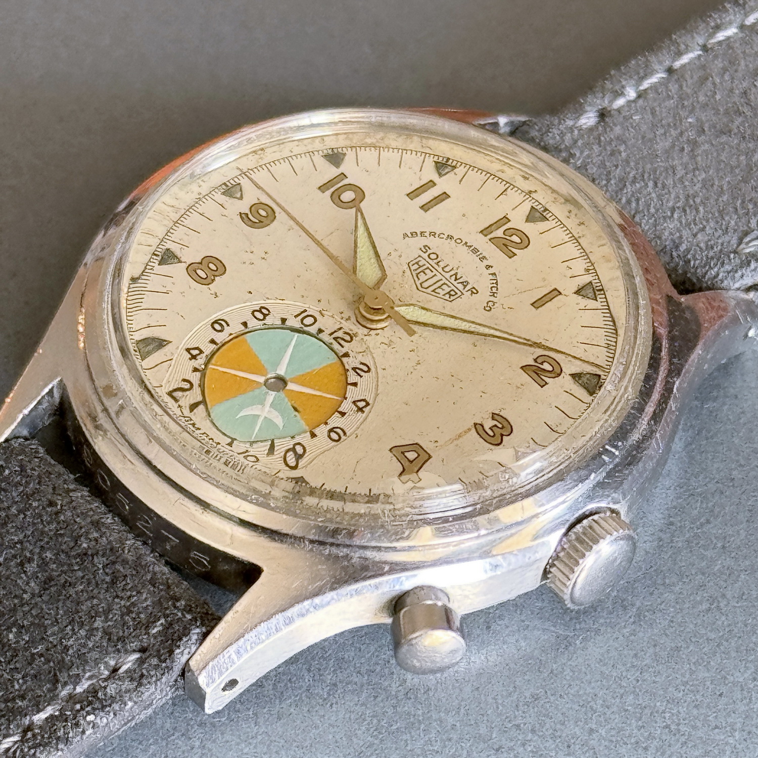 Second execution Solunar has capped pusher for tide dial; uses modified A. Schild 1188 movement