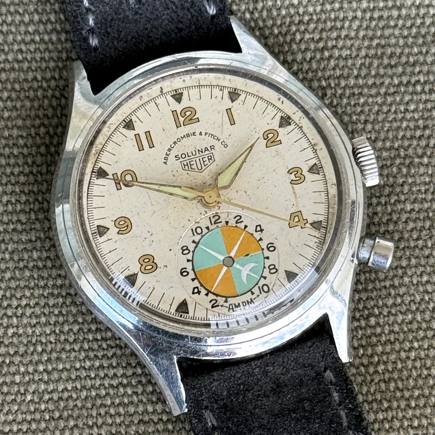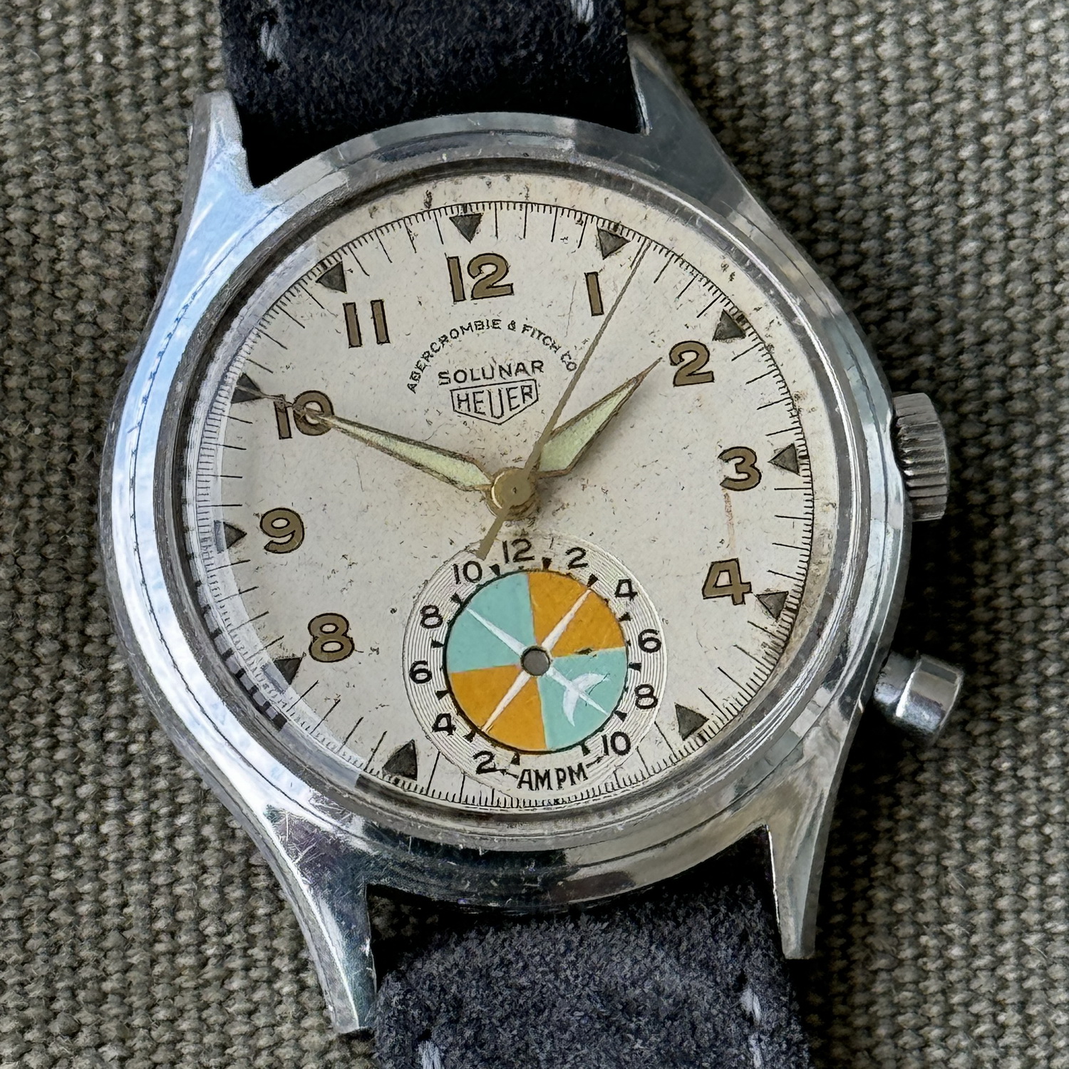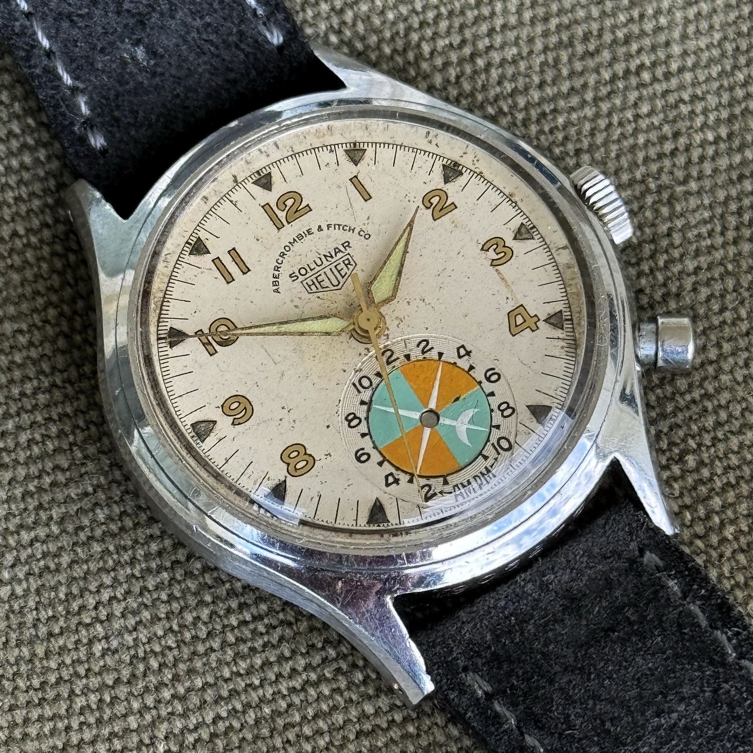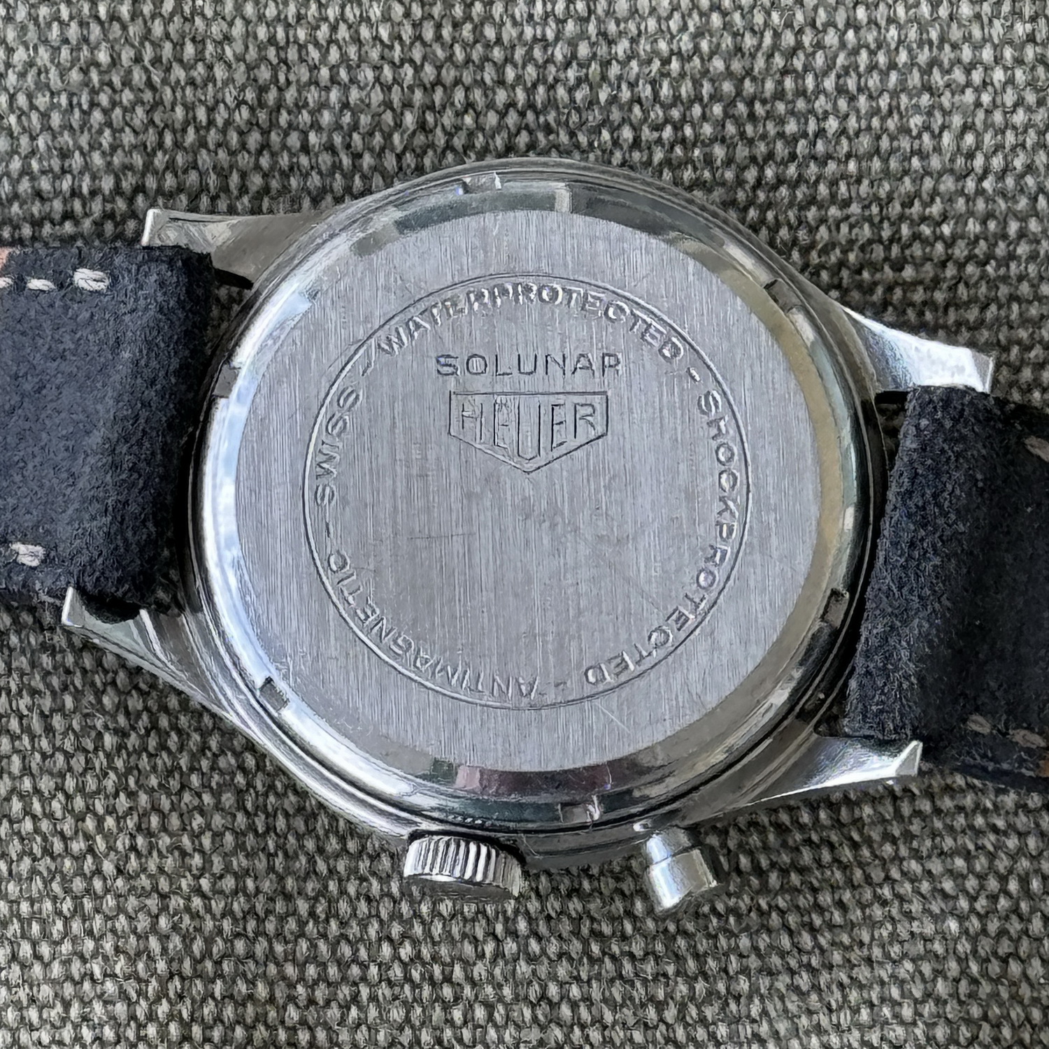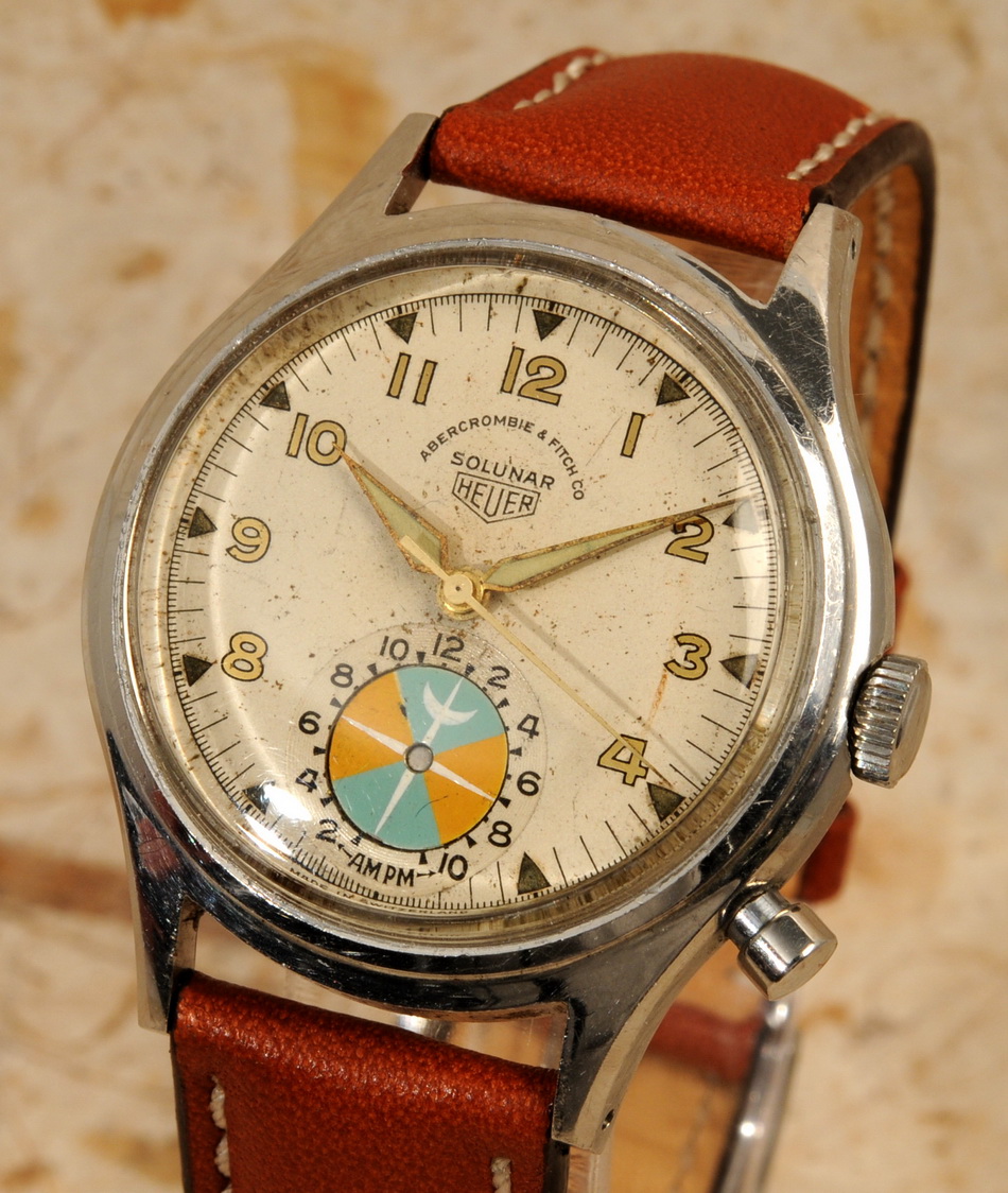 Sold as either Heuer or Abercrombie & Fitch watch. All Abercrombie & Fitch branded watches have stainless steel case. Heuer branded watches may have either stainless steel or chrome-plated case. All case-backs are stainless steel.