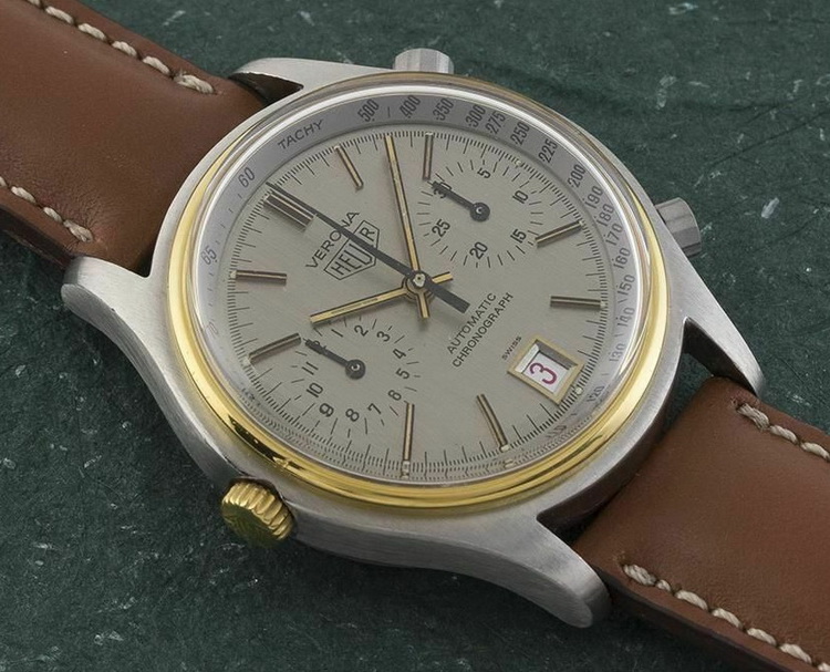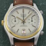 Reference 110.215 G has stainless steel and gold-plated case, with gray dial