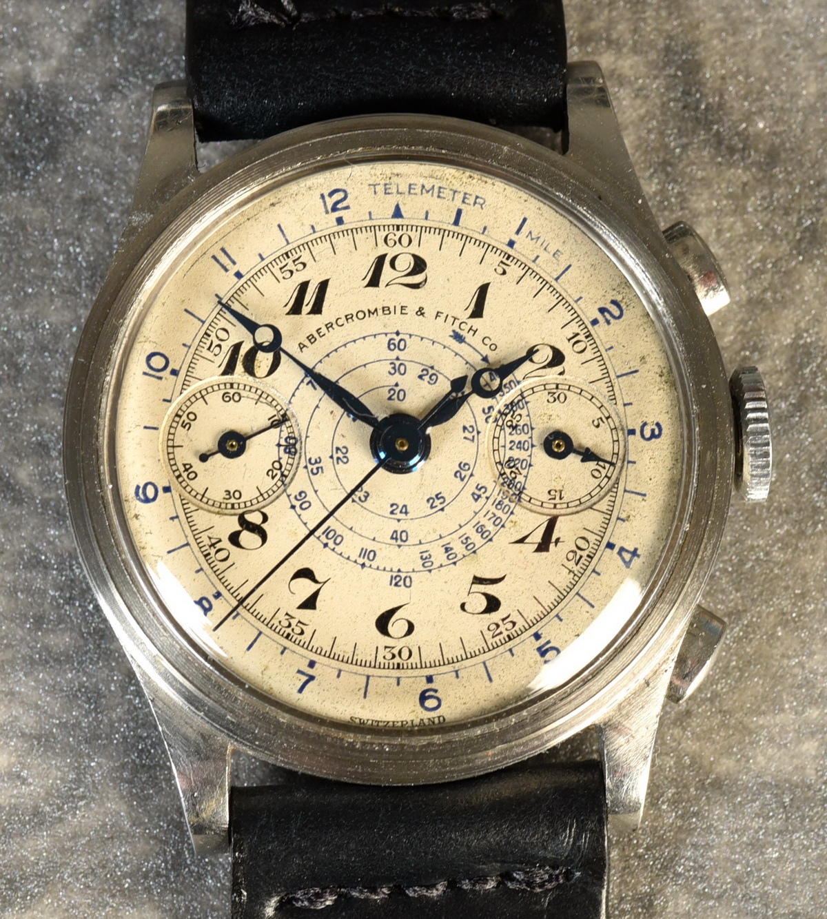 This 1938 Abercrombie & Fitch Christmas catalog includes what appears to be the first chronograph that was made by Heuer for Abercrombie & Fitch. On page 13 of the catalog, we see a “Wrist Chronograph Watch”, selling for $25.00. This Abercrombie & Fitch chronograph uses Heuer’s Reference 2403 case, which was introduced in the mid-1930s. The catalog description indicates that this is a wrist-watch, stop-watch, telemeter and tachymeter combined. The price was $25.00, making it one of the more expensive items in the Christmas catalog.