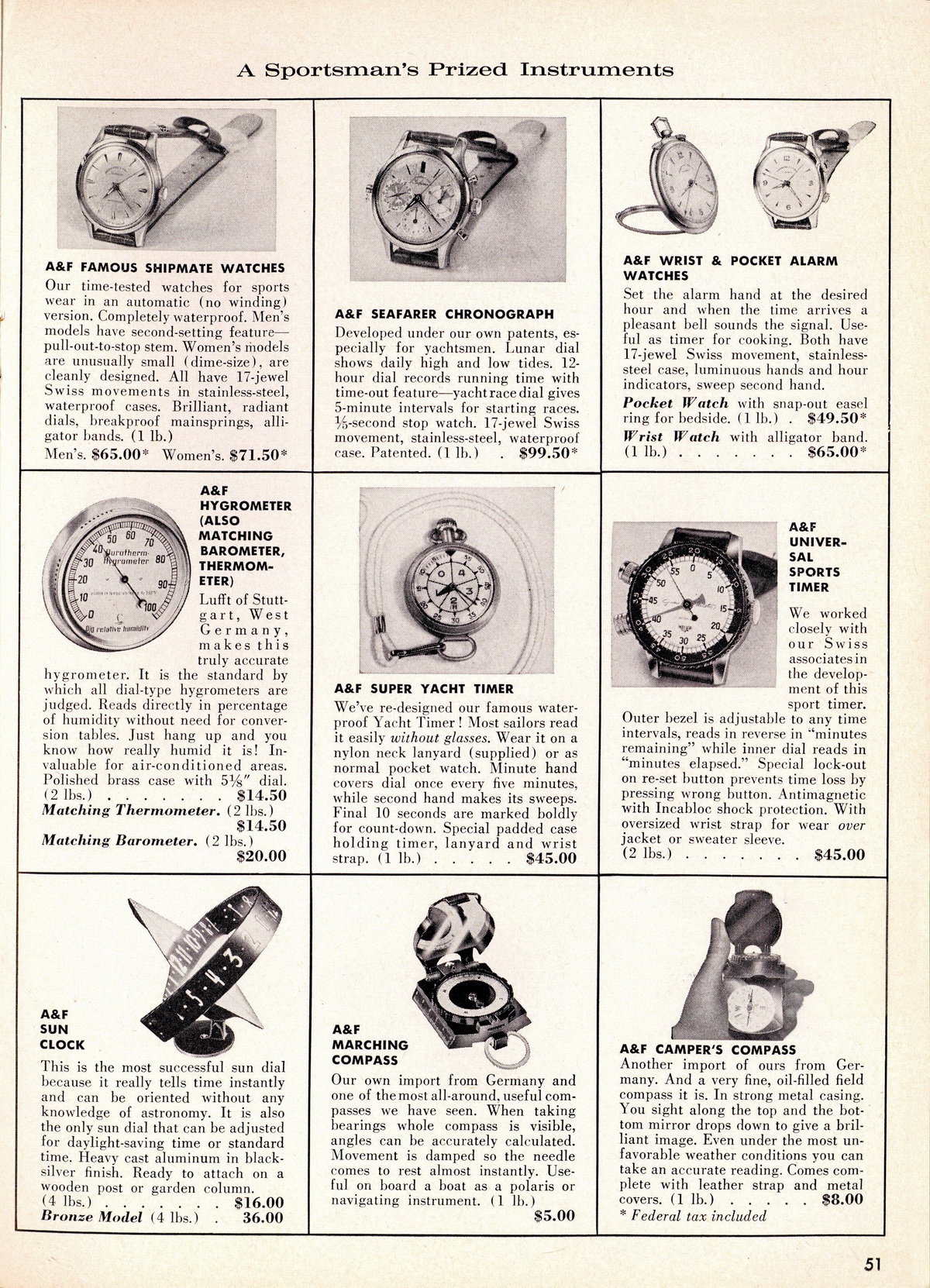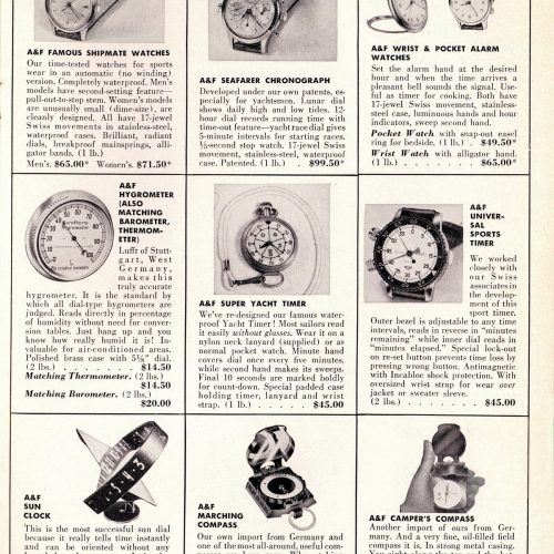 On page 51 of this 100-page catalog, we see five timepieces that were made by Heuer for Abercrombie & Fitch.