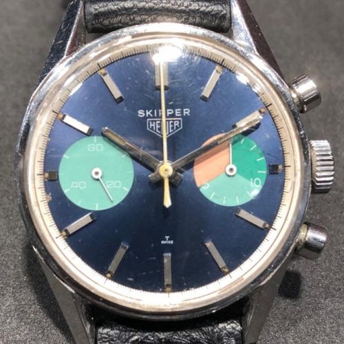 On November 24, 2018, Bonhams held its auction, “Hong Kong Watches 1.0”. There were 184 watches in the sale, including the Heuer Skipper (serial number 107604) shown below (Lot 965). This Skipper sold for HK$ 437,500 (US$ 55,905) including the buyer’s premium. A PDF of the auction catalog is HERE.