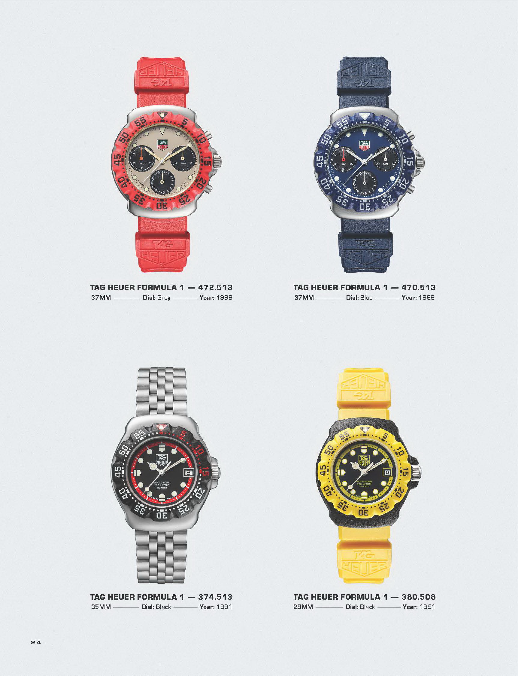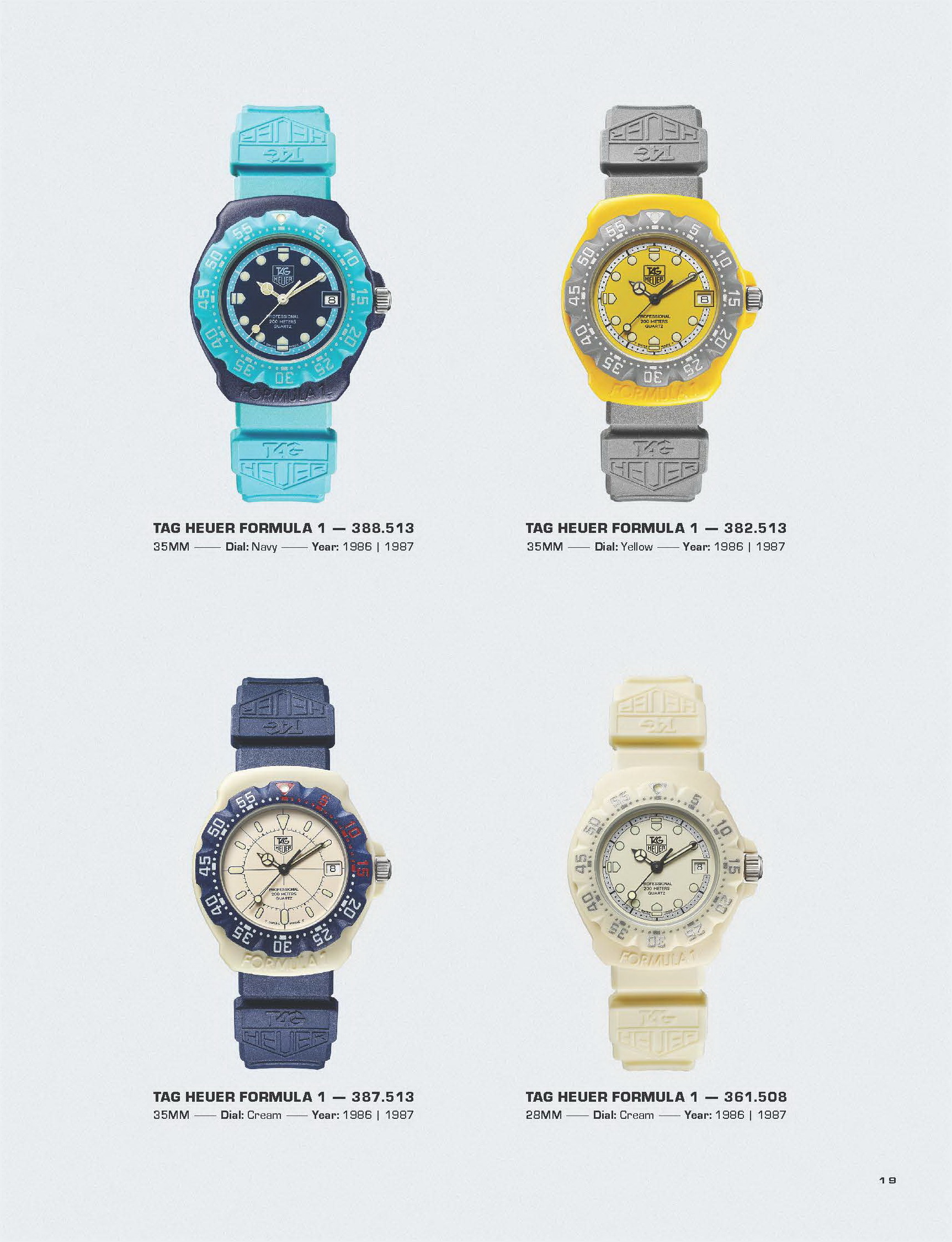 In connection with the introduction of these watches, TAG Heuer and Kith released a book authored by Nicholas Biebuyck (Heritage Director at TAG Heuer). This book covers the history of the original “first generation” Formula 1 watches, including an illustrated listing showing all versions of these timepieces, and also provides details on the 10 new “Kith Heuer” models. In this posting, we will present some highlights of the book; use the following link to see a PDF version of the entire book.