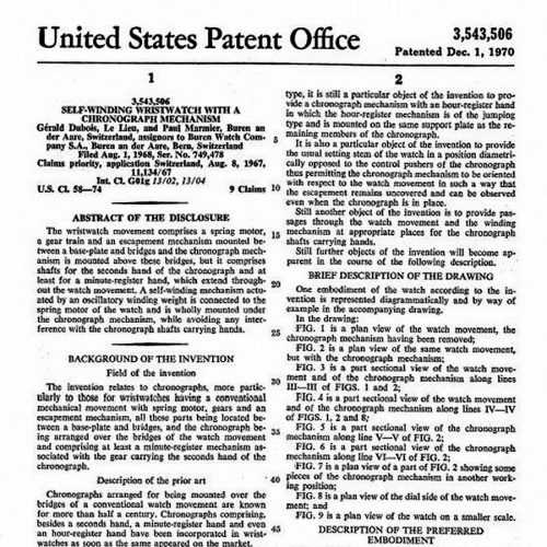 United States Patent for Self-Winding Chronograph (Issued to Buren)