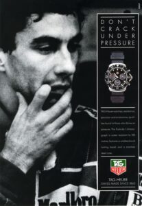 Finally, we show Formula 1 legend Ayrton Senna wearing a Formula 1 chronograph at the 1991 Japanese Grand Prix, when he clinched the 1991 Driver’s Championship.