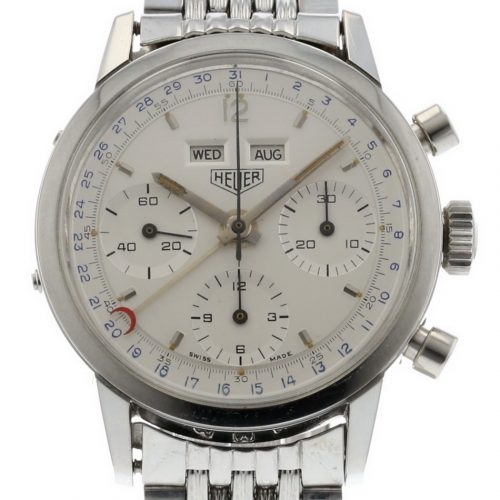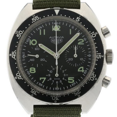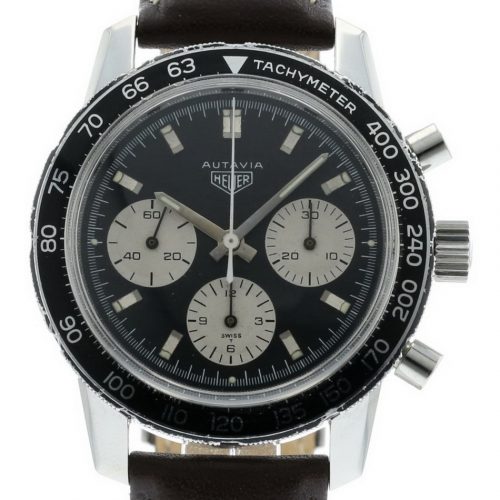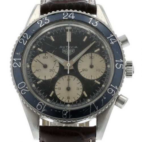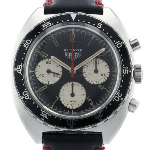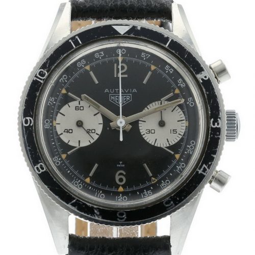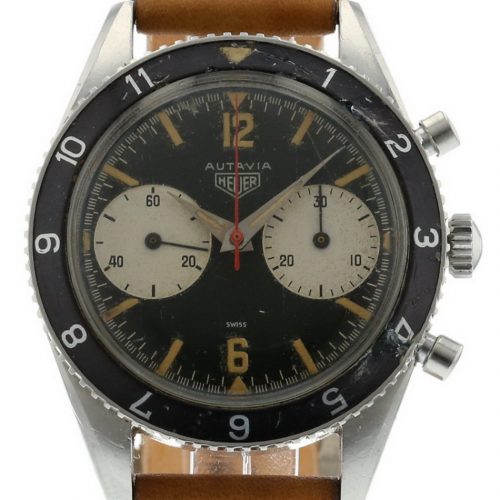 - Item 92 is an early two register Autavia (Reference 3646), with a screw-back case, and is distinguished by its oversized registers, known to Heuercollectors as “Big Subs”. These models are coveted by collectors, as they were produced only in the early days of the Autavias. This model has dauphine hands in steel, with a distinctive red hand for the chronograph seconds.