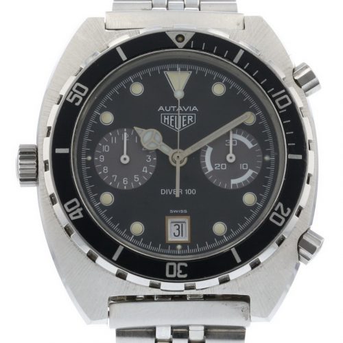 - Item 44 is the Diver 100, one of the most distinctive of the Caliber 12 Autavias. The Diver 100 has round luminous markers, a Mercedes hour hand,and a dive bezel, marked in minutes (1 through 15), then every five minutes. The Reference 11630 case has a unidirectional bezel, so that the diver cannot inadvertently add time to the dive.