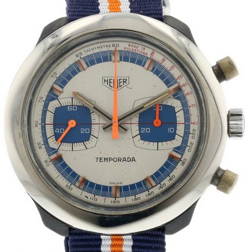 - Item 68 is a Temporada, one of the strangest Heuer ever produced. The case is fiberglass, using monocoque construction so that you access the movement byremoving the crystal. Dials were silver, with blue, red or gray accents, and there was also a gold-tone model.