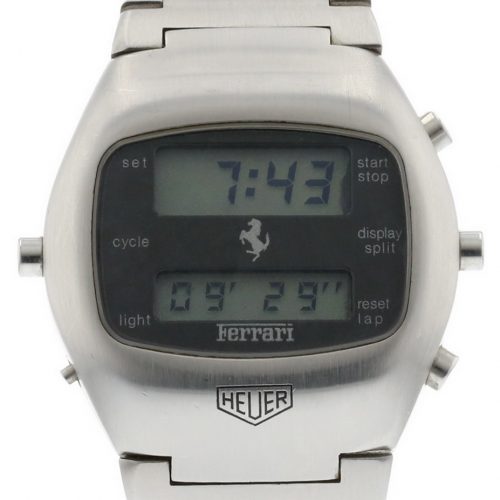 - Heuer introduced its line of electronic chronographs in 1975, and this Chronosplit (Item 84) dates from 1977. This version has dualLCD displays, one for the time-of-day and the other for the chronograph functions. Heuer was the official timer for the Ferrari Formula One team in the 1970s, and this Chronosplit has the Prancing Horse logo on the case.