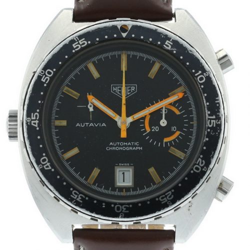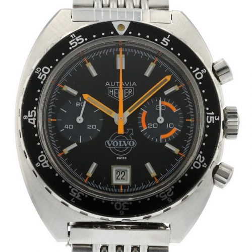 - Over the years, Heuer chronographs were used as promotional items for many automotive and motorsports brands. Item 85 is a manual-wind Autavia (Reference 73463) with the Volvo logo at the bottom of the dial.