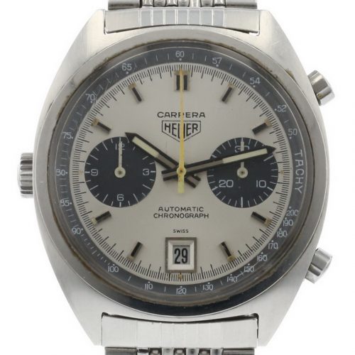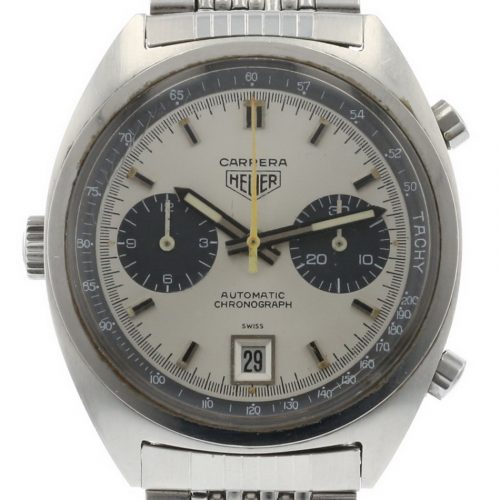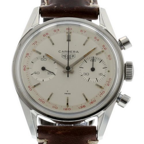 - Item 100 is a Reference 1153 S version of the Carrera, with a silver dial and contrasting charcoal registers and inner bezel. The hands appear to have been replaced with the later, wider hands.