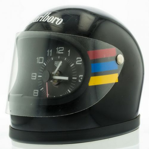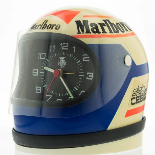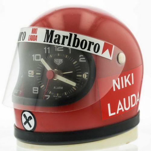 - In the late 1970s, Heuer offered a series of desk clocks, in miniature racing helmets. Items 1, 2, 3, and 71 are the helmets for Clay Regazzoni, James Hunt, Niki Lauda, and Alain Prost, respectively. These helmet clocks are described inHeuer’s 1977 catalog.
