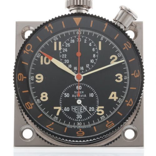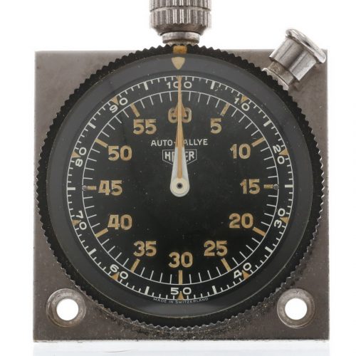 - Item 4 and Item 11 are samples of Heuer’s dashboard timers, the choice of rally drivers and navigators from the 1930s through the 1980s. Item 4 is an Auto Rallye, a stopwatch with 60-minute capacity. Item 11 is a Super Autavia dashboard chronograph. While many of the dashboard models were limited to specific timing functions (for example, the Master Time was a clock and the Monte Carlo was a 12-hour stopwatch), the Super Autavia was a full chronograph, with the minute recorder at twelve o’clock.
