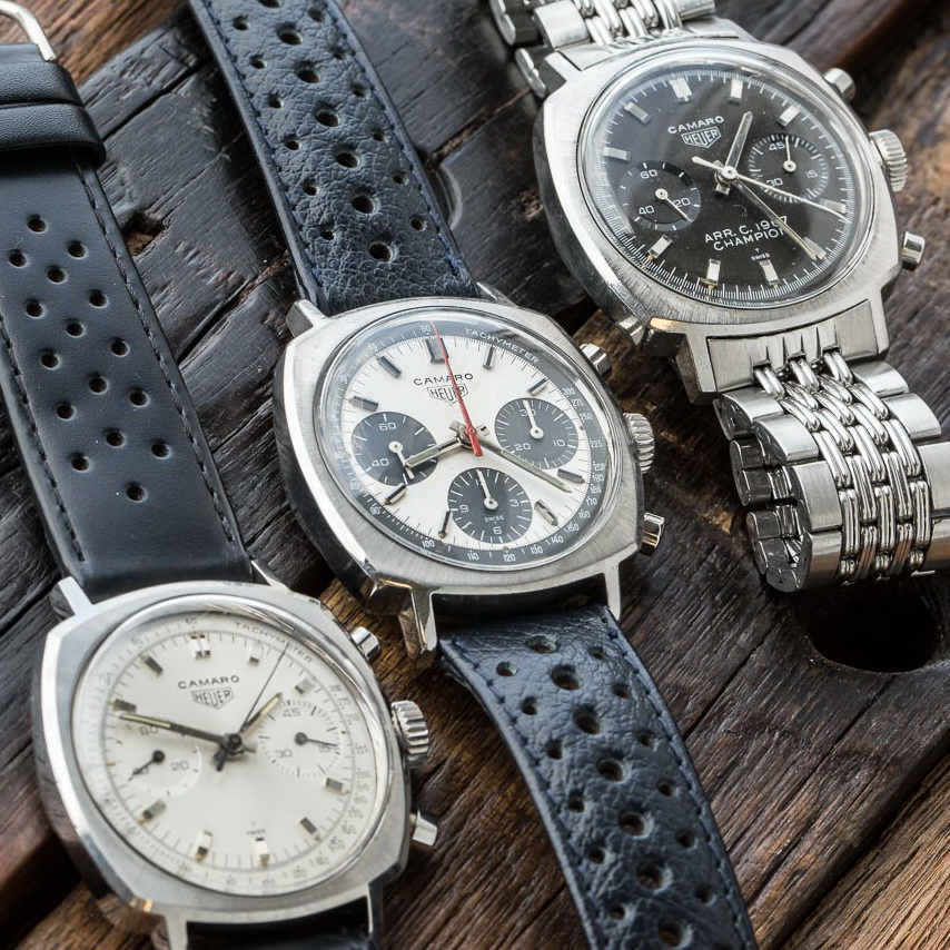 There are three additional chronographs powered by the Caliber 12 and related movements in the Heuer 100: