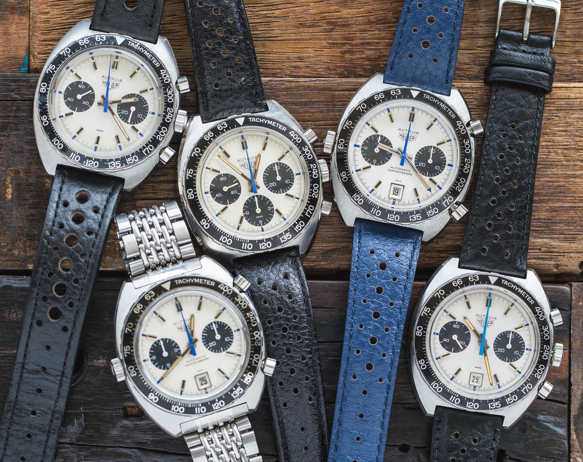 The Heuer 100 includes six of the early Autavias, representing different six generations, as follows: