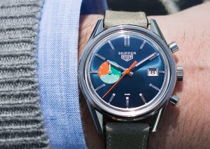 With this first Skipper, rather than seeking a tool to be used on a boat, Heuer produced a wristwatch that would be cherished by the yachtsman. Yes, it’s the Skipper that we are celebrating. More mundane timepieces could be used to time the yacht races, but this Skipper captured the spirit of the Intrepid and the colors of the Newport waters. So too, the Hodinee Skipper is not a chronograph for timing regattas, but is a tribute to the colors and style of Heuer’s 1960s chronographs.