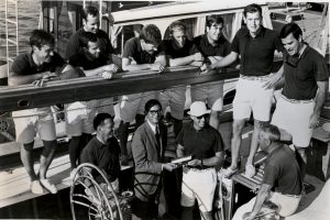 Jack Heuer reports that Heuer’s US Country Manager was active in yachting, and had received the mandate for Heuer to supply the Intrepid with its timing equipment. Portraits of the Intrepid crew show the sailors wearing Heuer Aquastar Regate watches.