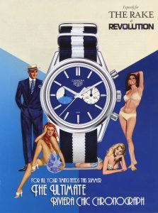 In May 2018, The Rake and its sister publication Revolution announced a new limited edition of the TAG Heuer Carrera, nicknamed the “Blue Dreamer”. Although the model name is “Carrera” rather than “Skipper”, clearly it was the vintage Heuer Skipperrera that inspired the new watch. The watch was positioned as a watch for the summer, especially for those who spent their summers in the blue waters of the French Riviera.