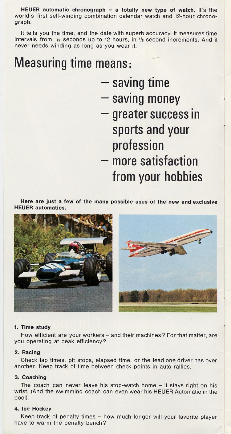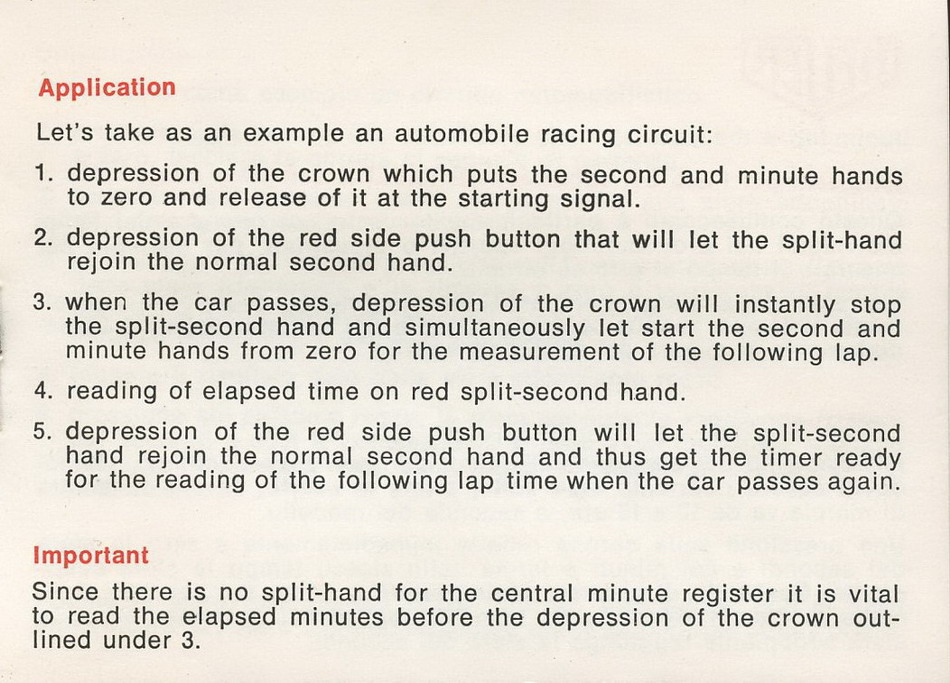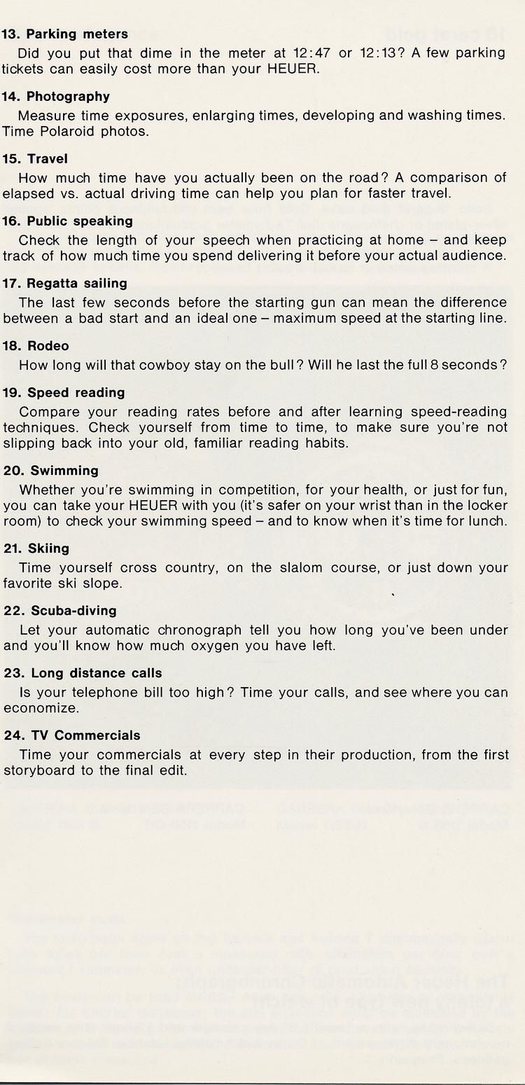 Have a look at the 1970 brochure from Heuer (shown below), describing the 24 uses for an automatic chronograph, and notice how many of these operations can be accomplished simply by using a rotating bezel.