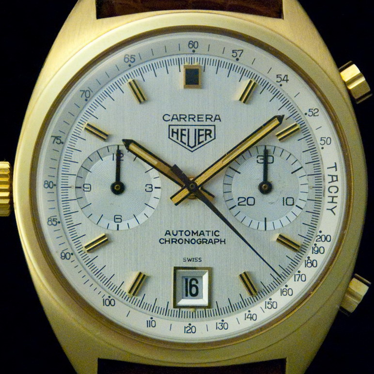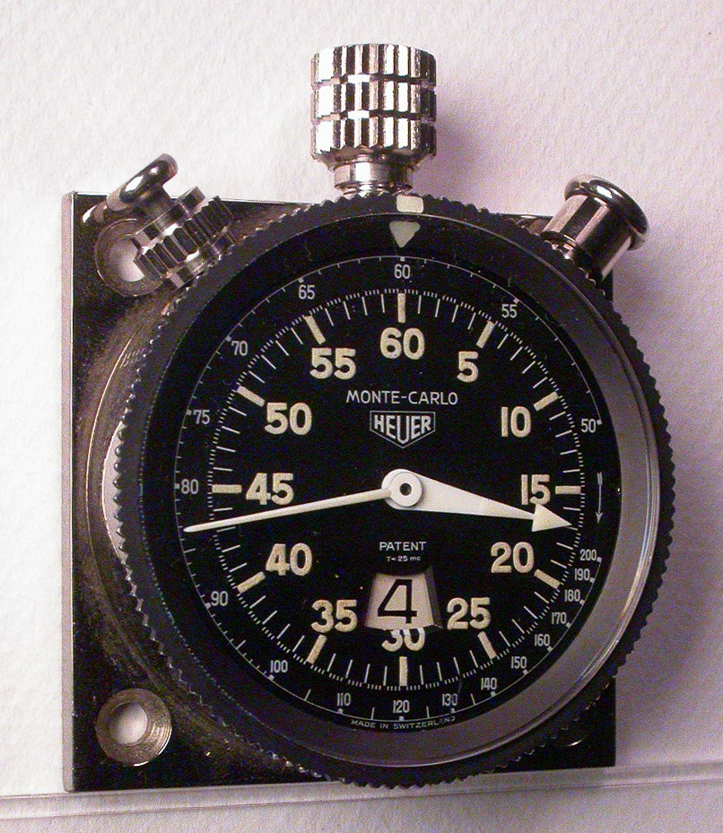 At least among the major brands, it seems that Heuer was alone in building a chronograph with a rotating tachymeter scale. Almost 50 years after the fact, we can only speculate as to why things developed in this manner. I have a theory as to why Heuer used rotating bezels on the Autavia, first the rotating minute or hour bezels and then the rotating decimal minutes and tachymeter. It all derives from Heuer’s experience in providing timing equipment to racers, and especially Heuer’s series of dashboard timers and purpose-built stopwatches.