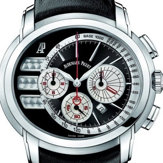 So too, in the world of chronographs, whether we are considering the “classics” from Patek Phlippe, Rolex, Omega or Heuer, or some of the newer models that incorporate a tachymeter bezel (such as the Audemars Piguet chronographs, shown below), we probably do best to admit that the tachymeter bezel is added to a chronograph primarily for the sake of style, rather than for its usefulness as a tool. We can all admit this, and not feel guilty for pretending to be racers.