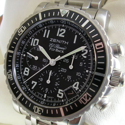 Mechanical chronographs with the flyback complication have recently become much more common, at least compared with previous eras. Shown below are recent models of flyback chronographs from Panerai, Girard-Perregaux, Graham and Zenith. All these models have fixed tachymeter bezels, making them useful for computing speed over a measured mile, with the flyback allowing the determination of average speeds over sequential measured miles.