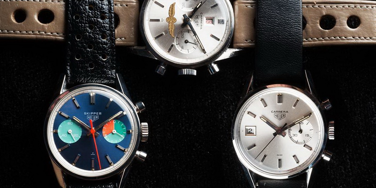 Skipper, Indianapolis, Panda and 45 Dato. The Carrera case made history in watchmaking, thanks to this stunning quartet. #VintageWatches #Museum #TAGHeuerCarrera #TAGHeuerWatch #Indianapolis #Solunar