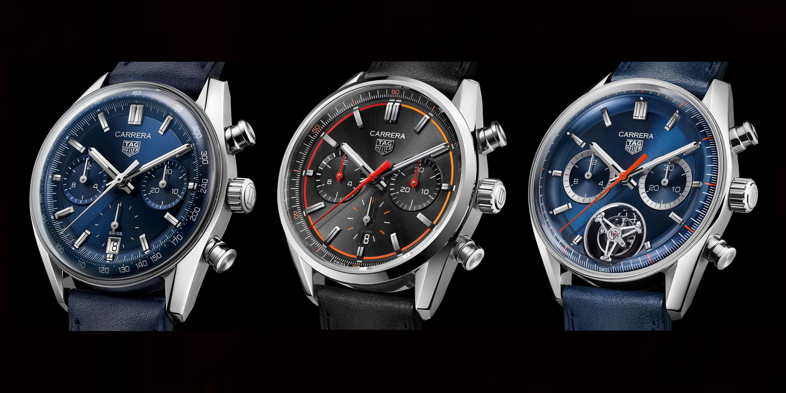 Together, these five chronographs represent the following new developments for the Carrera chronograph collection: