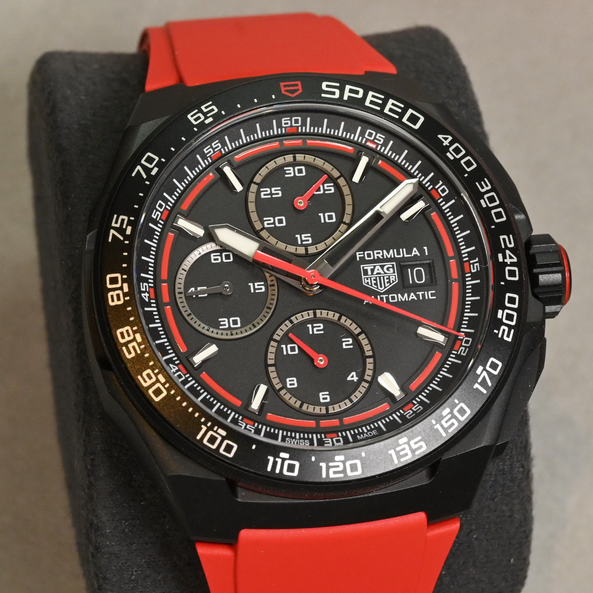 In this posting, we will introduce TAG Heuer’s line-up of new Formula 1 chronographs, and provide some quick impressions, based on a quick visit to our local Atlanta Boutique.