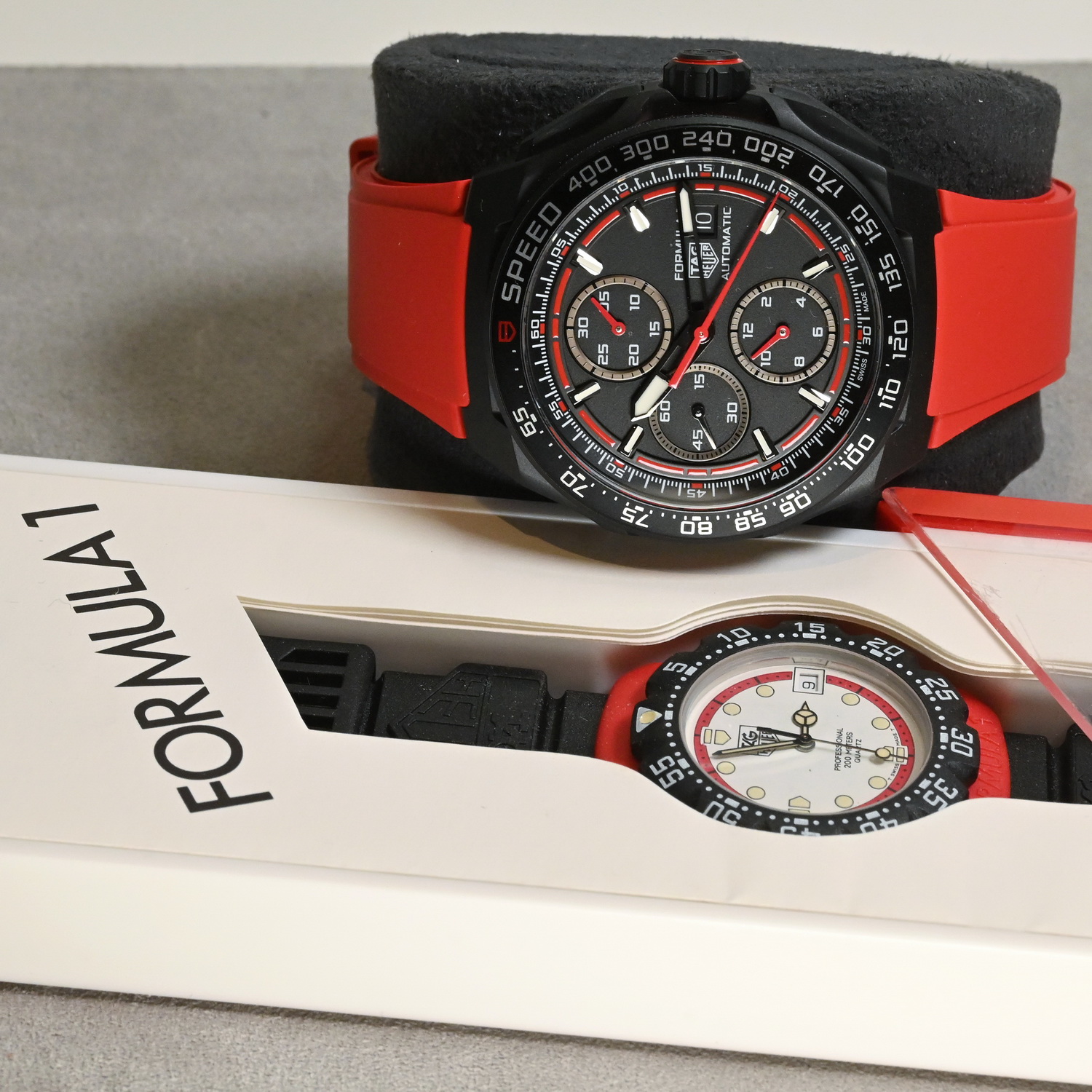 The Formula 1 was the first collection to have the TAG Heuer logo on the dial, after Techniques d’Avant Garde (TAG) completed its acquisition of Heuer in January 1986. TAG Heuer introduced a range of colorful Formula 1 watch in 1986, with the first generation of Formula 1 chronographs coming in 1989. The Formula 1 collection has been through five additional generations since then, with the current sixth generation cases being inspired by the Autavia C-shape cases from the 1970s.