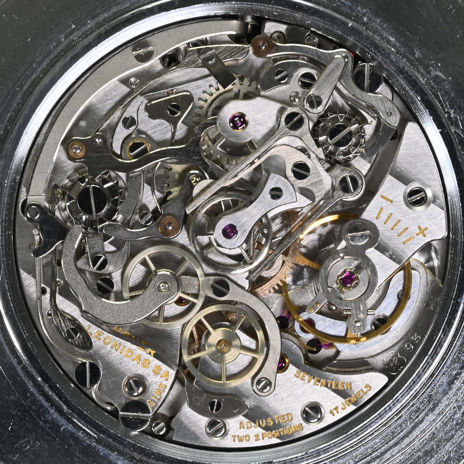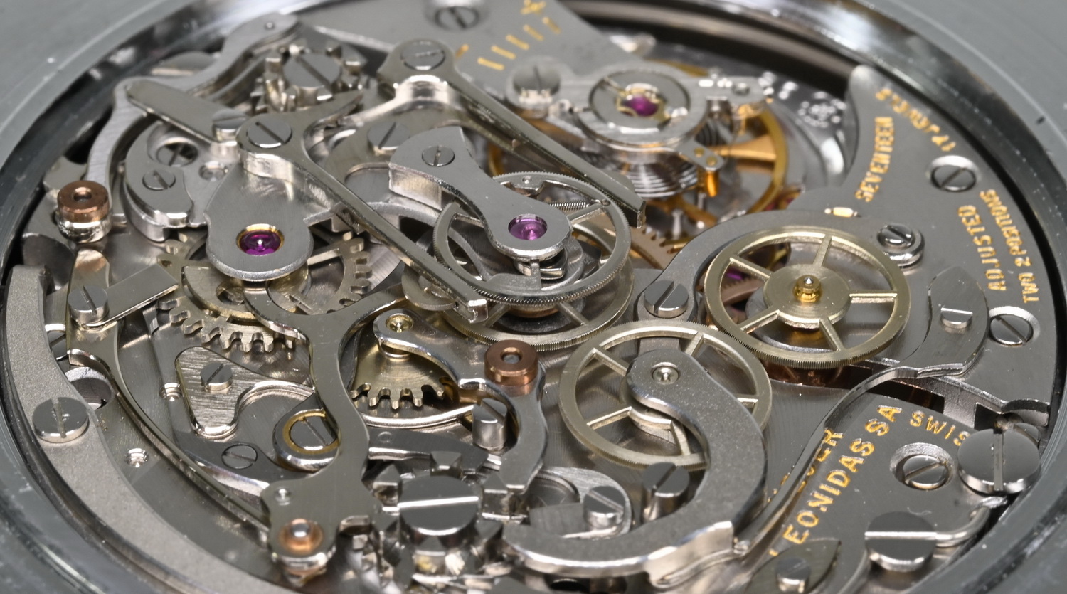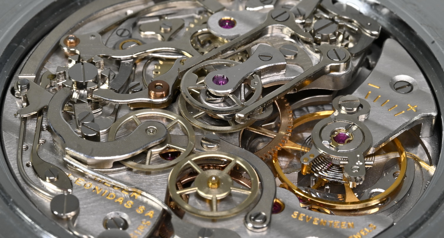 But while the main design element of the Century line of stopwatches was the highly-legible center-mounted minute hand, with the rattrapante chronographs already having four hands on the center pinions – two for the time-of-day and two for the chronograph second hands – we can assume that it was not feasible (or legible) to have a central chronograph minute hand. Accordingly, the Reference 11.40x models incorporate an entirely different design the simpler “Century” stopwatches.
