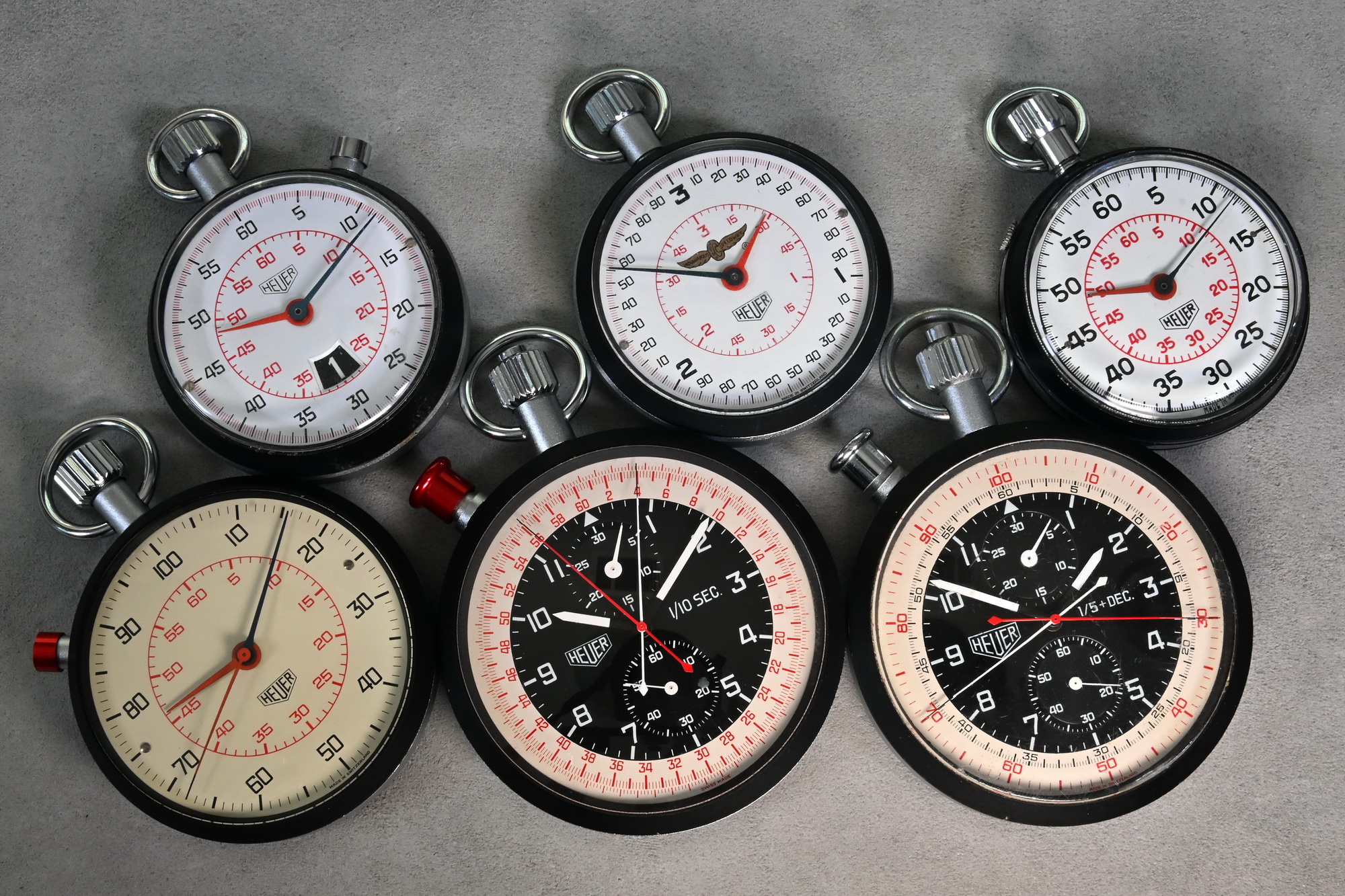 For me, this story starts circa 1958. Then approaching its 100th year of operations, Heuer had a massive catalog of stopwatches and dashboard timers, designed to be used to time everything from road rallies to rowing, from sky diving to stenography. In a bold step to mark this anniversary, the company began to redesign virtually all its stopwatches and timers – dials and hands, cases and movements — with the primary objectives of improving the legibility of the displays and making the cases more rugged.