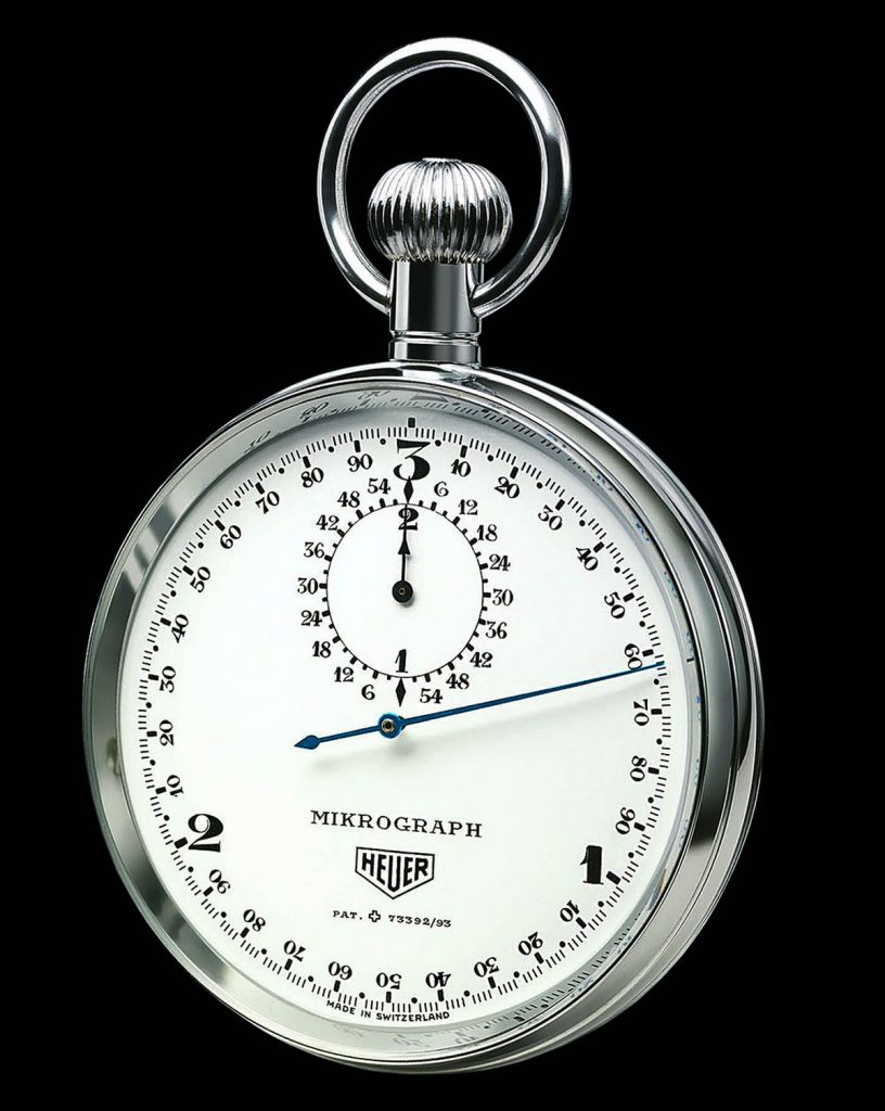 With patents that were filed circa 1915, Heuer used high frequency movements to provide precision 1/50 and 1/100 second stopwatches, with a split-second option. The Monaco that TAG Heuer has introduced today runs at 36,000 vibrations per hour, which has become the standard for high-frequency movements in the modern era.